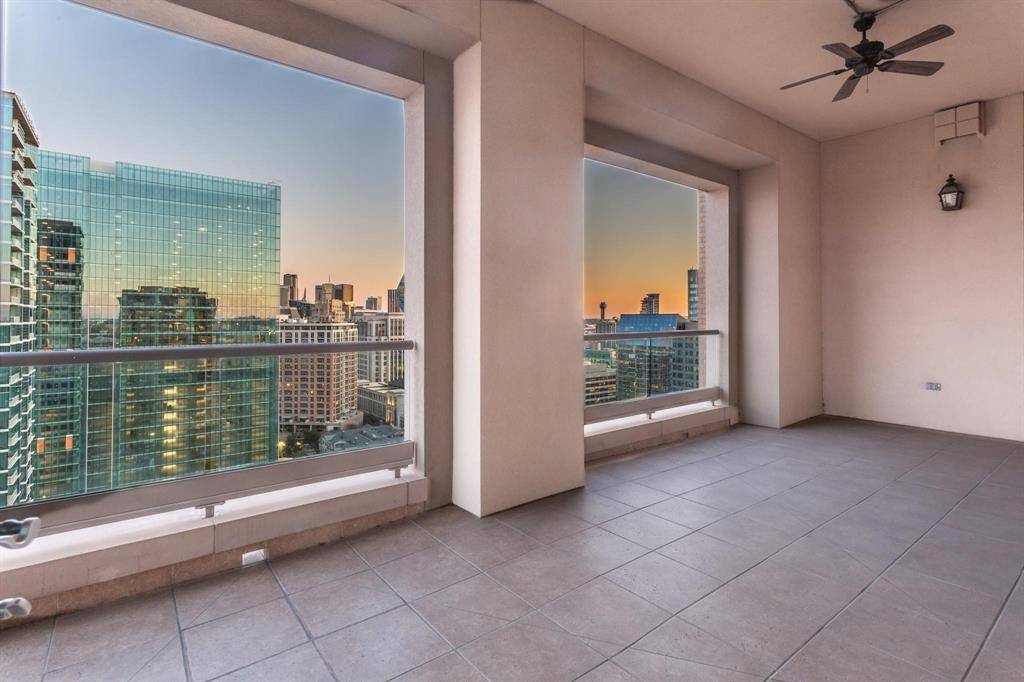 Perched on the 19th floor, this 3-bedroom, 3.1-bath Sub-Penthouse at The Stoneleigh Residences redefines high-rise luxury while living like a true home. Your private elevator opens to a secluded vestibule and foyer, setting the stage for gracious living. Cherry wood floors and picture-frame paneling create warmth throughout the generous Living Room, where a fireplace, wet bar, wine refrigerator, and a tucked-away office with pocket doors elevate daily life. The open Kitchen is a chef's dream with Sub-Zero & Wolf appliances, marble counters, butler's pantry, and ice maker—anchored by an island and flowing seamlessly into the Dining Area. Entertain with ease as guests spill onto a sizable balcony showcasing jaw-dropping vistas of Downtown, Reunion Tower, the Calatrava Bridge and Uptown. The richly paneled Library shares a marble bath and walk-in closet-desk combo with a Guest Bedroom suite, while a second Guest Suite with ensuite bath stands ready for visitors. The Primary Suite boasts its own balcony, a clever niche for a large safe, and a spa-caliber Bath with steam shower, dry sauna, dual vanities, and an expansive wrap-around closet. Three coveted parking spaces and access to Stoneleigh's 5-Star amenities complete the lifestyle: 24-hour concierge, valet, owners' club room with bar, card room, 20-seat stadium style theater, banquet facilities, catering kitchen, state-of-the-art fitness center with locker rooms, sauna & steam, resort-style pool, outdoor living with grills & fireplace, a grand lawn with private fireplace and pet park—plus direct access to Le Meridien Stoneleigh Hotel. All in walkable Uptown, minutes from Victory Park and American Airlines Center with Mavs and Stars games and concerts, Klyde Warren Park, CBD, The Crescent, the #1 rated largest contiguous urban Arts District in the US, myriads of fine dining choices, shopping, and Dallas' major highways. Stoneleigh #19A isn't just a residence—it's Uptown's most refined lock-and-leave lifestyle.