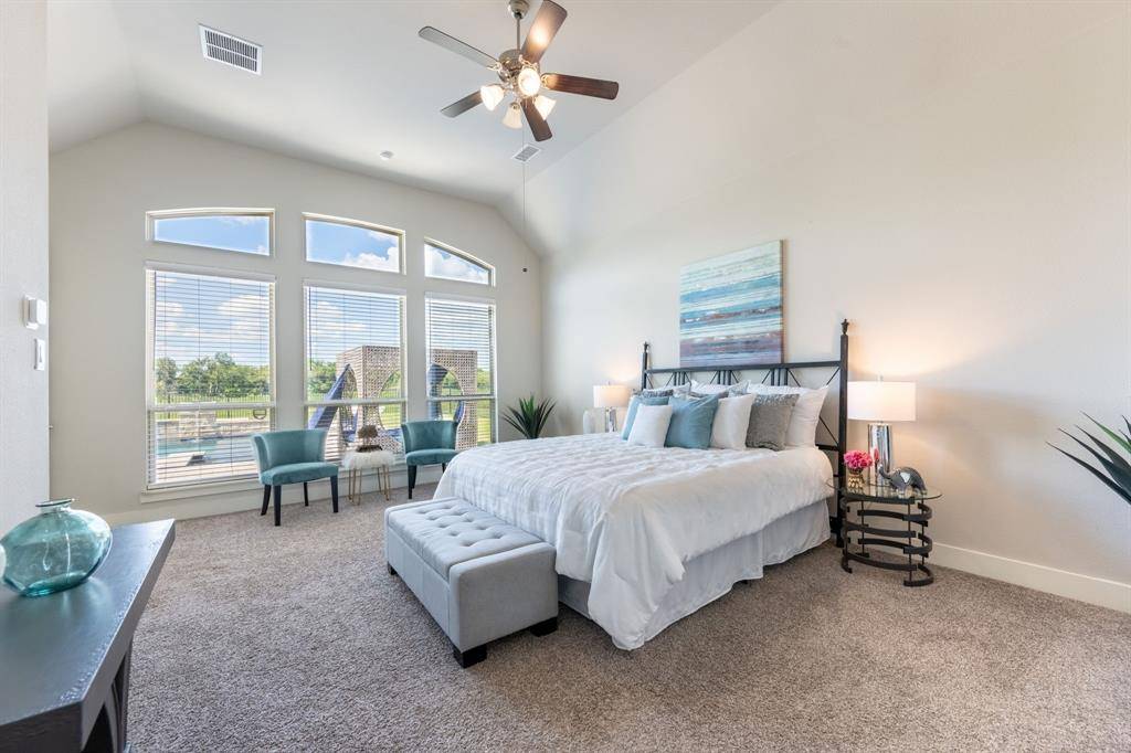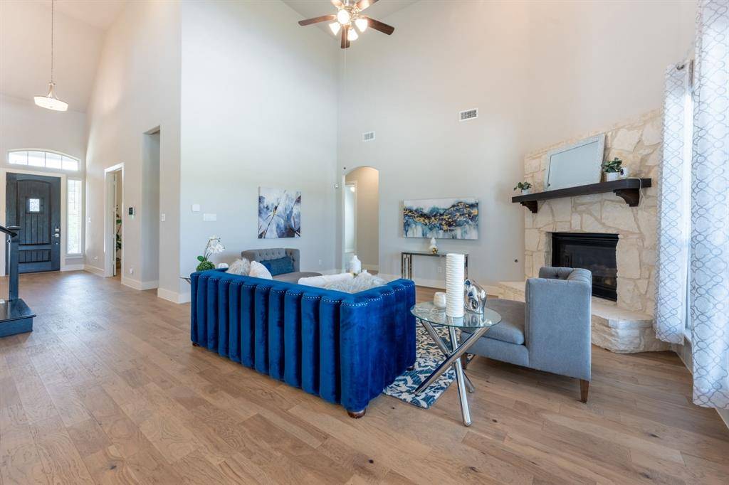 One of the best priced homes in Heath, and less than 10 years old. Set on over an acre with open green space behind the home, this one and a half story property offers privacy, flexibility, and room to grow. A 2.75% VA assumable loan is available for qualified buyers. Inside, the layout is intentional and comfortable. The kitchen features a walk in pantry, modern cabinetry, double ovens, abundant storage, and a large island that anchors the living area with a stone fireplace. TWO PRIMARY SUITES provide exceptional versatility for multigenerational living, MIL or extended guests. A dedicated office with French doors creates a focused workspace, while the upstairs loft with half bath adapts easily as a media room, fitness space, or play area. The backyard delivers the lifestyle buyers are searching for. With open space behind you, sunsets feel peaceful and private. The pool and spa include waterfalls and LED lighting controlled from the iAqua app. A hand chiseled stone bar with built in grill, refrigerator, and cooler sets the stage for gatherings, and there is still ample yard space for future additions. Three car garage, electric vehicle charger, whole home Generac generator. Minutes from The Harbor and Lake Ray Hubbard.