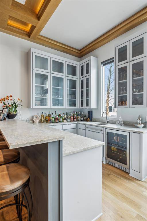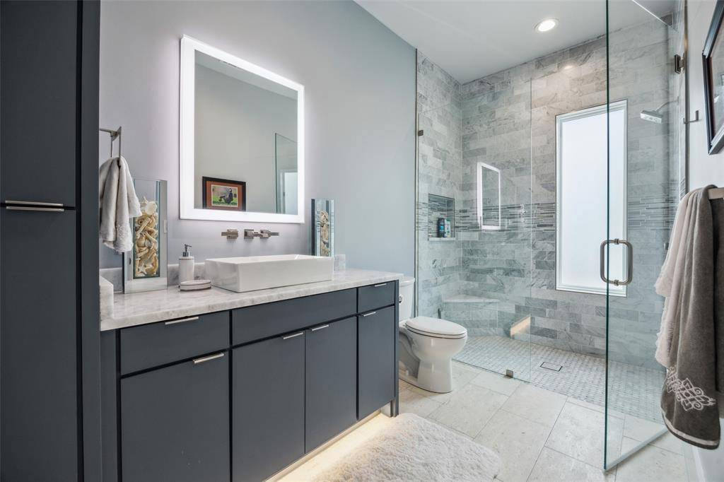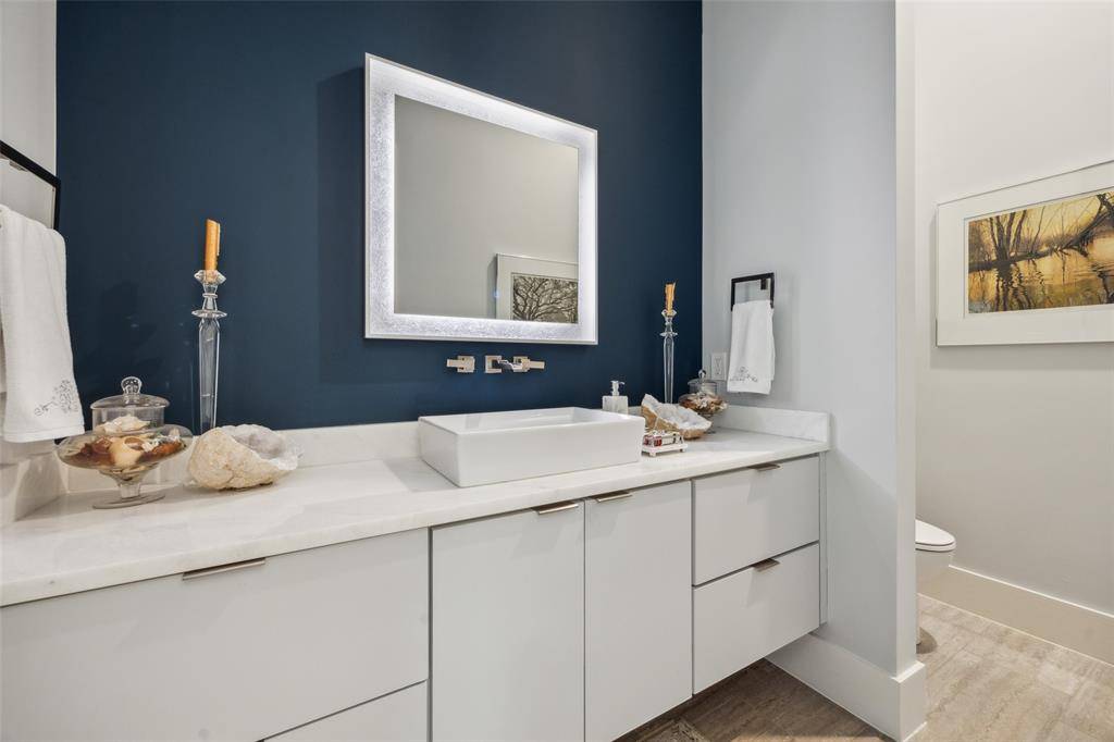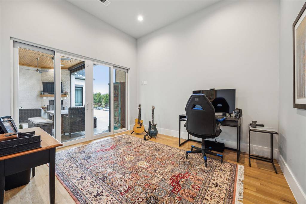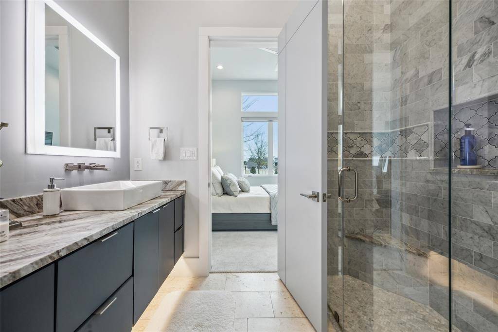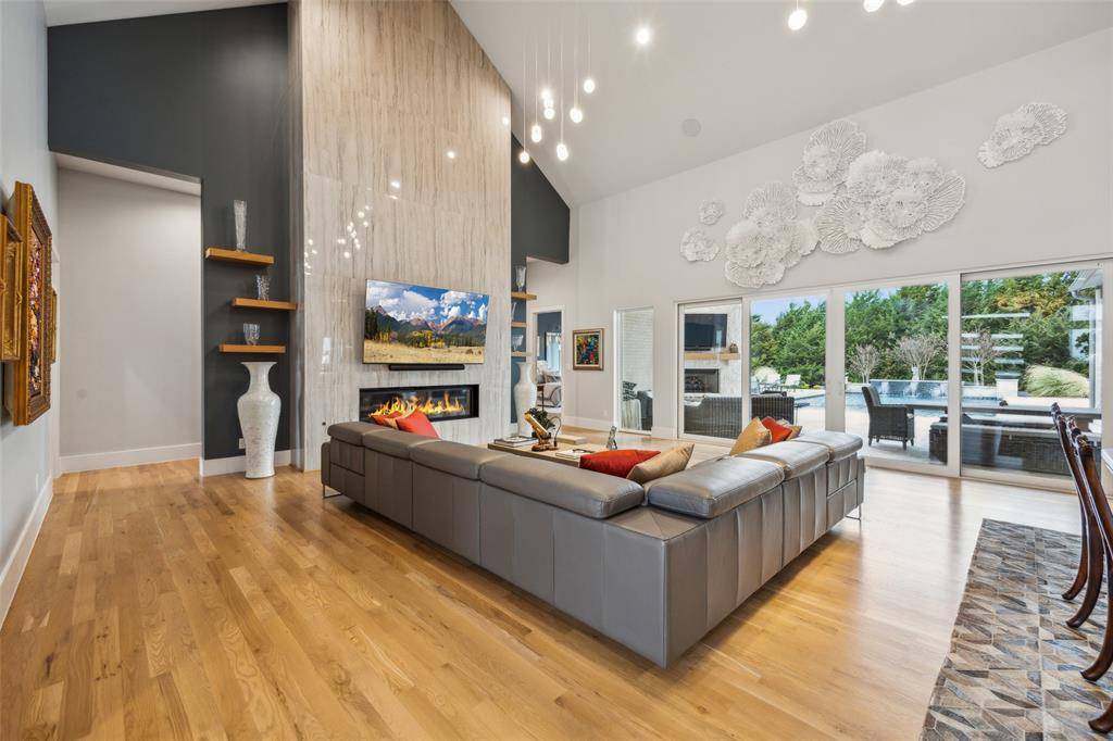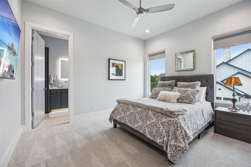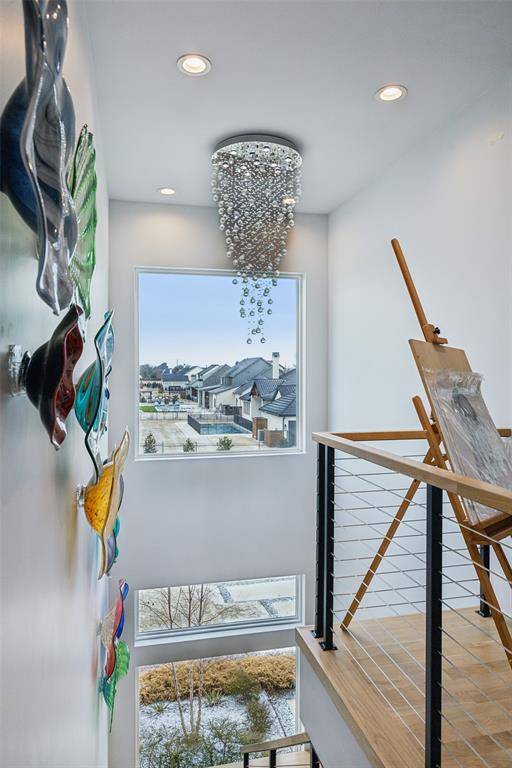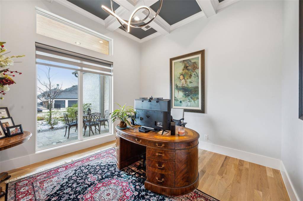 An extraordinary soft contemporary masterpiece by David Clark Custom Homes, this residence exemplifies impeccable design and craftsmanship. Grand smoked-glass double front doors open to soaring 12-ft ceilings and an awe-inspiring 25-ft ceiling in the main living area. Every detail is curated for luxury and function—from sound-reducing insulation throughout to custom electric window shades and floating bathroom vanities. A dramatic floating staircase with integrated step lighting leads to the upper-level living spaces, highlighted by sleek modern lighting. The expansive home office features coffered ceilings, creating a sophisticated workspace. The gourmet kitchen stuns with a massive 13-ft island that seats eight, Dacor appliances, dual dishwashers, a wine fridge, a built-in refrigerator, and elegant LED accent lighting. A dedicated dog wash adds convenience in the utility room. The serene primary suite boasts rich wood floors, a fireplace, and a custom walk-in closet with an island. Its spa-inspired ensuite includes dual rain heads, wall-mounted showers and a coffee bar with mini fridge. The living room overlooks a lush, tree-lined backyard with a spectacular 26'×40' resort-style pool, spa, fire bowls, and water feature. A travertine patio, outdoor fireplace, motorized blind, and integrated plant drip lines complete the oasis. The 3-car garage impresses with an enamel floor, Tesla charger, storage systems, and attic lift. Walk to top-rated schools. Some furnishings available for sale. Mortgage savings may be available for buyers of this listing.