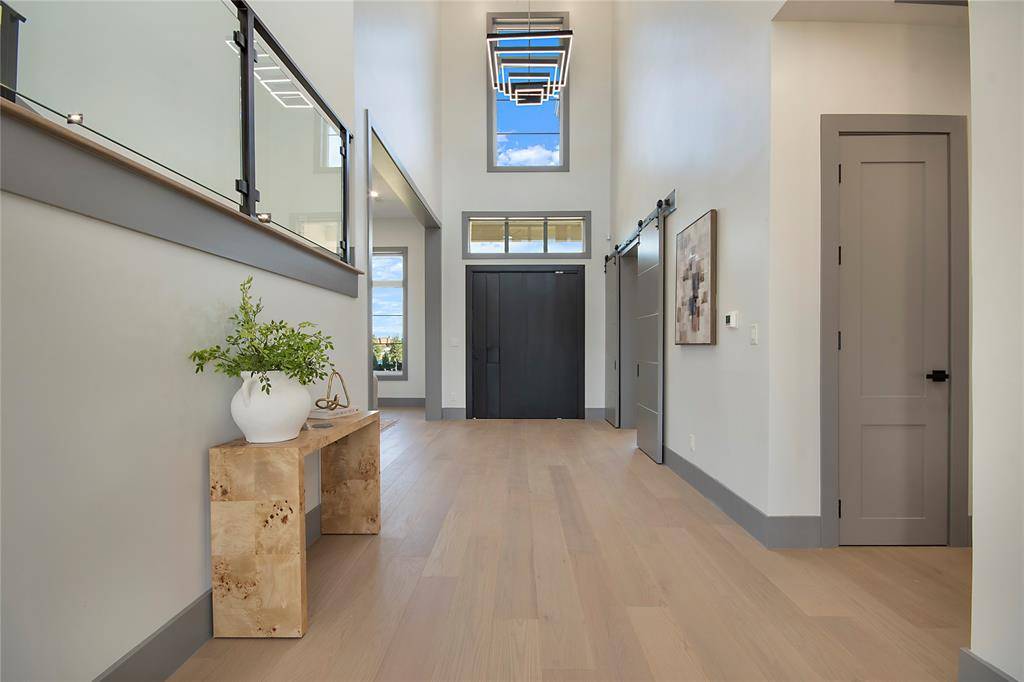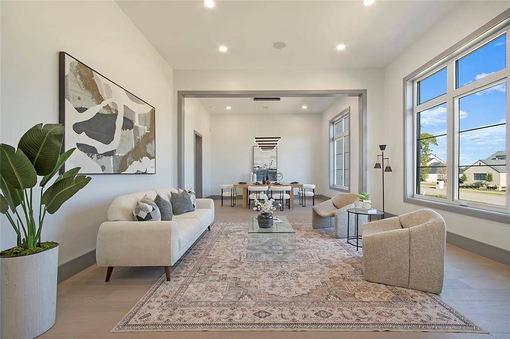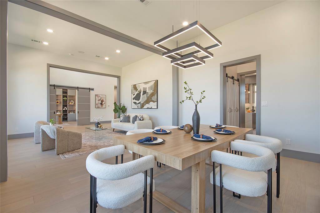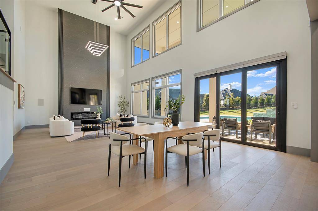 Indoor-outdoor living flows effortlessly to a resort-style backyard featuring a pool, spa, waterfall, and outdoor kitchen. Combining luxury, innovation, and serenity, this Ridge Lakes residence defines modern living.