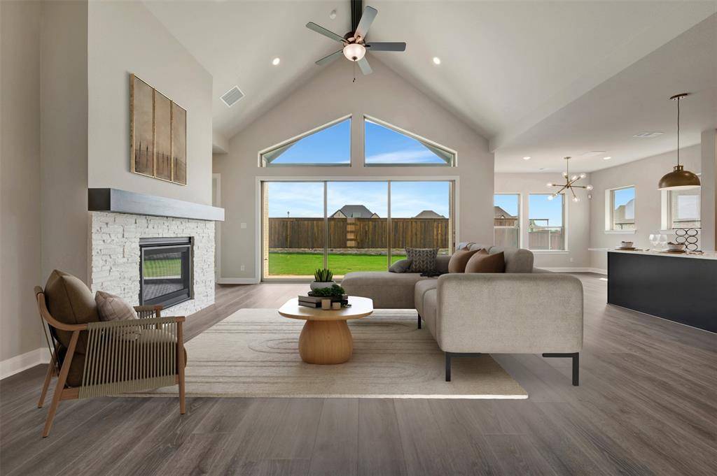 A stunning single-story home that blends timeless architecture with modern luxury. Designed for both relaxation and connection, this spacious plan features soaring ceilings, an impressive 15' sliding glass wall that fills the living area with natural light, and an inviting layout perfect for entertaining. The chef-inspired GE Café kitchen showcases elegant finishes, stacked cabinetry, and a generous island that becomes the heart of the home.