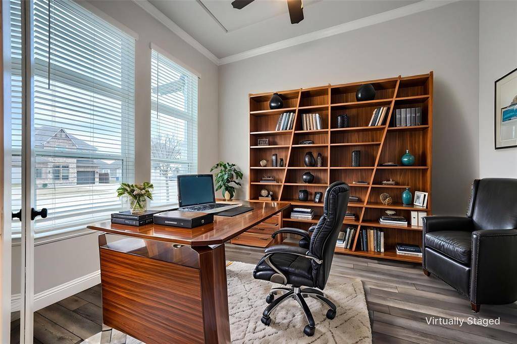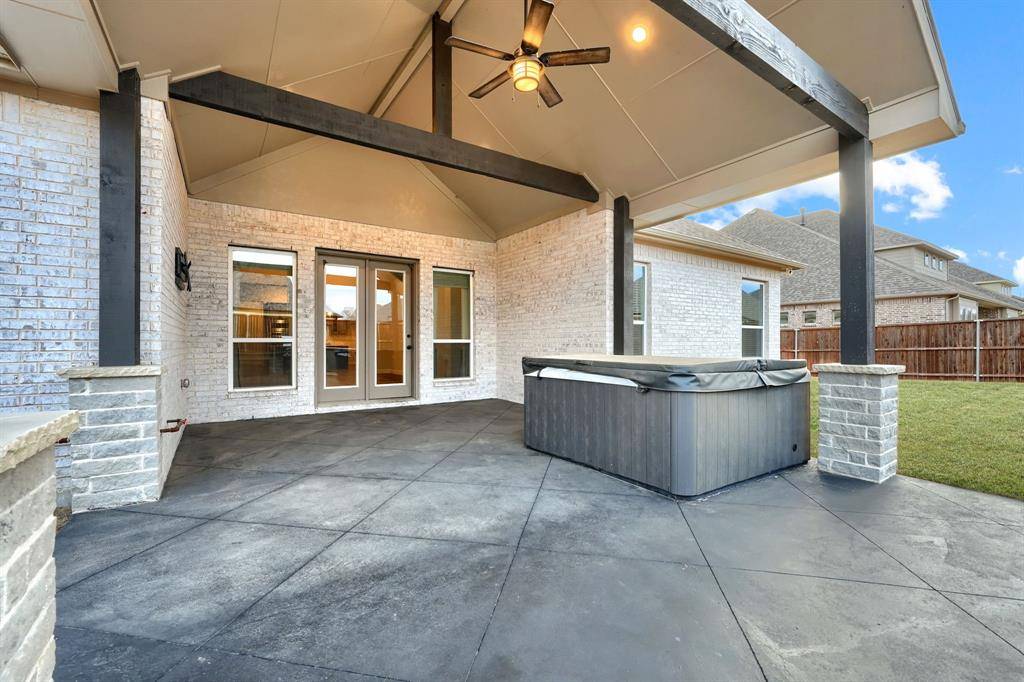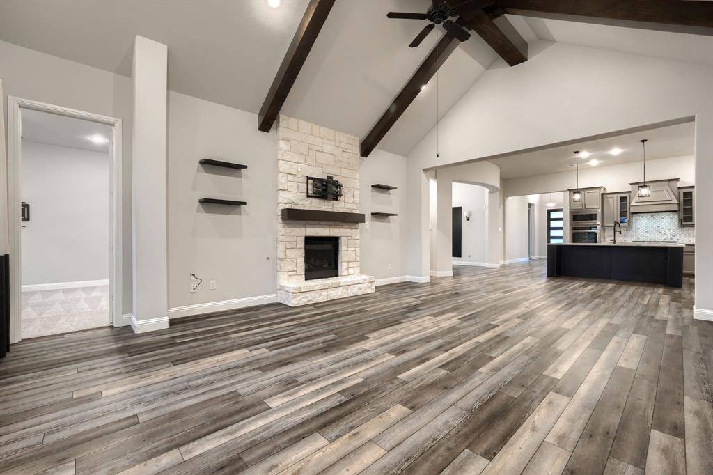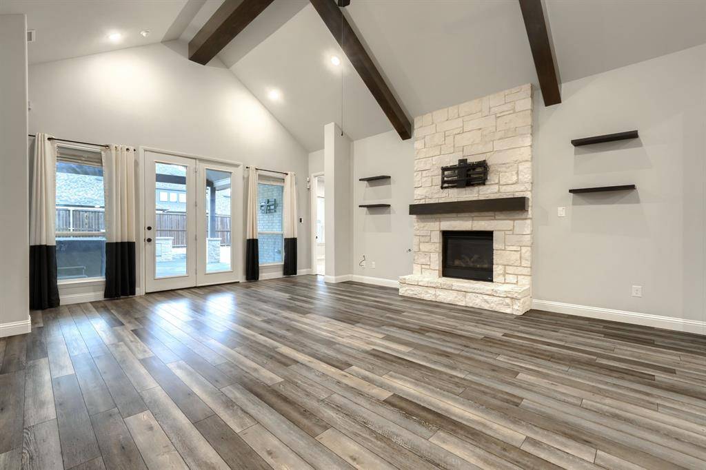 Gorgeous Pacesetter-Aberdeen plan with tons of upgrades! This unique one-story Home features Luxury Living and thoughtful Design! The spacious Open Floorplan home has 10 foot ceilings throughout and a lot of natural light! The Living room has a 15 foot cathedral ceiling, wood beams and a cozy floor-to-ceiling stone wood burning fireplace! The Gourmet's Kitchen features extended Cabinetry, high-end stone Countertops, a Walk-in Pantry, gas Cooktop and Double Ovens! The Primary Suite features a luxurious Walk-in Shower with frameless glass, double shower heads and upgraded tile pattern! A private Office-Study is conveniently located at the front of the house for enhanced privacy and tranquility! The Media or Game Room is very spacious and conveniently located! Kick back and enjoy the extended back patio while relaxing in the Jacuzzi Spa! The backyard is also equipped with a full Outdoor Kitchen- built-in gas grill, mini-fridge and plenty of counter space to cook a delicious meal for your guests! Additional features: Oversize yard, Garage epoxy floor and EV charger.