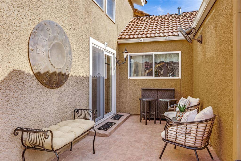 covered patio overlooking the fountain at hole 7. A private front patio for quiet mornings. A