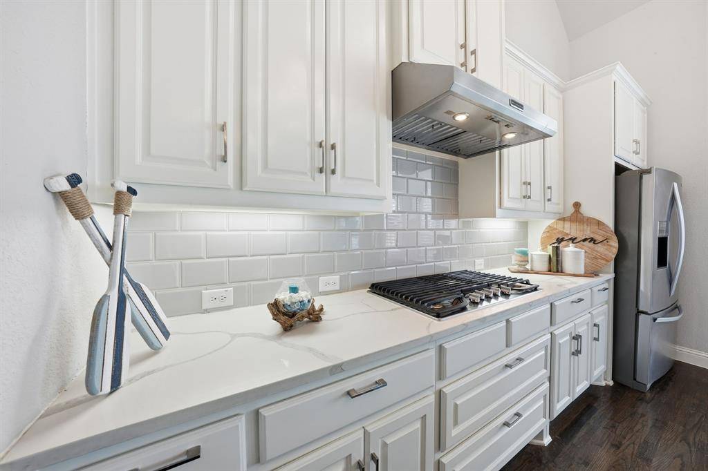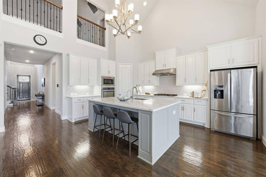 At the heart of the home, the gourmet kitchen overlooks the dining and family rooms and features a large center island, quartz countertops, gas cooking, abundant storage, and a spacious walk-in pantry — perfect for entertaining and everyday living.