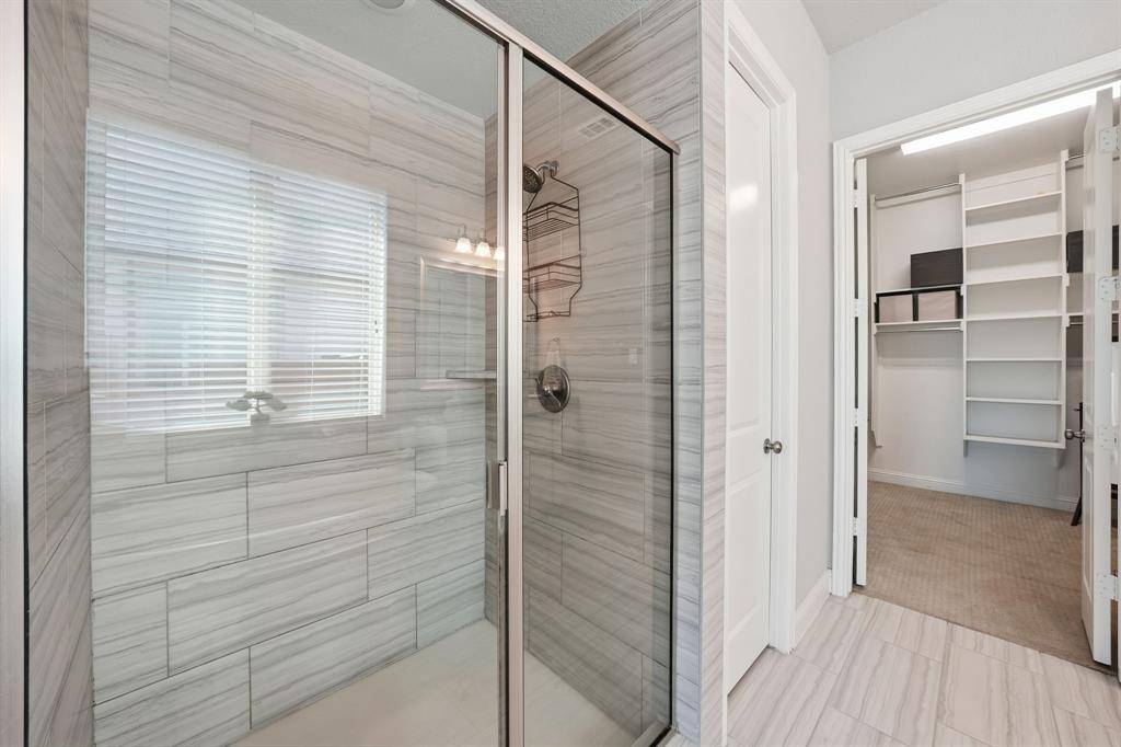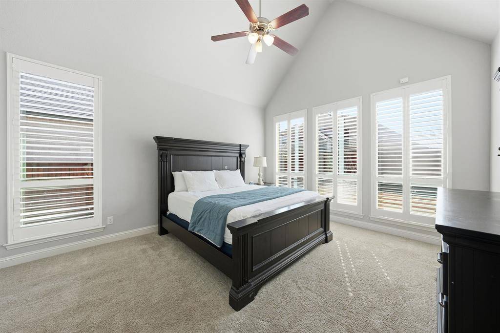 The primary suite offers a peaceful retreat with abundant natural light and a spa-inspired ensuite bath complete with a soaking tub, dual vanities, and an oversized walk-in closet.