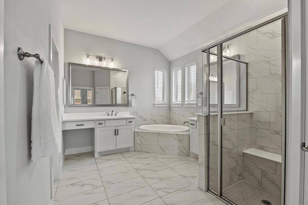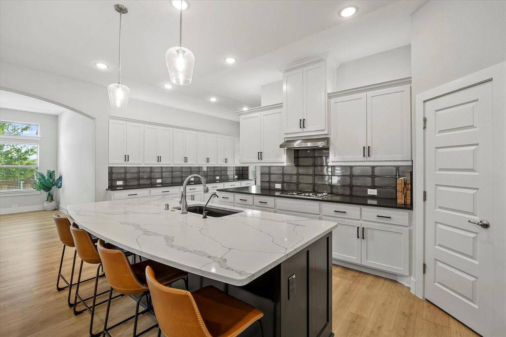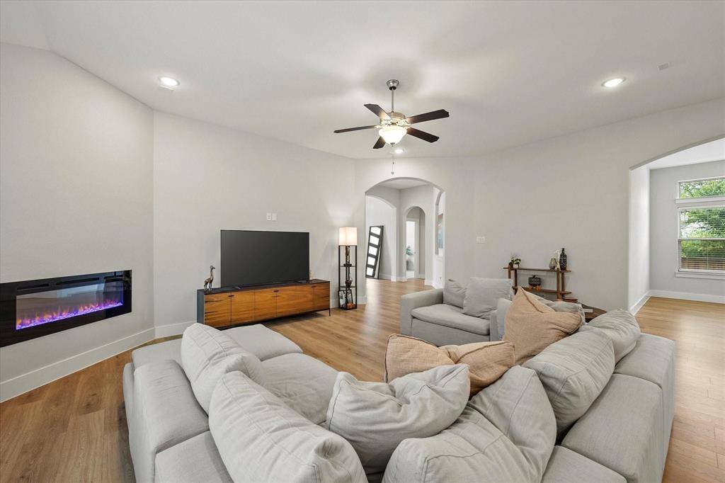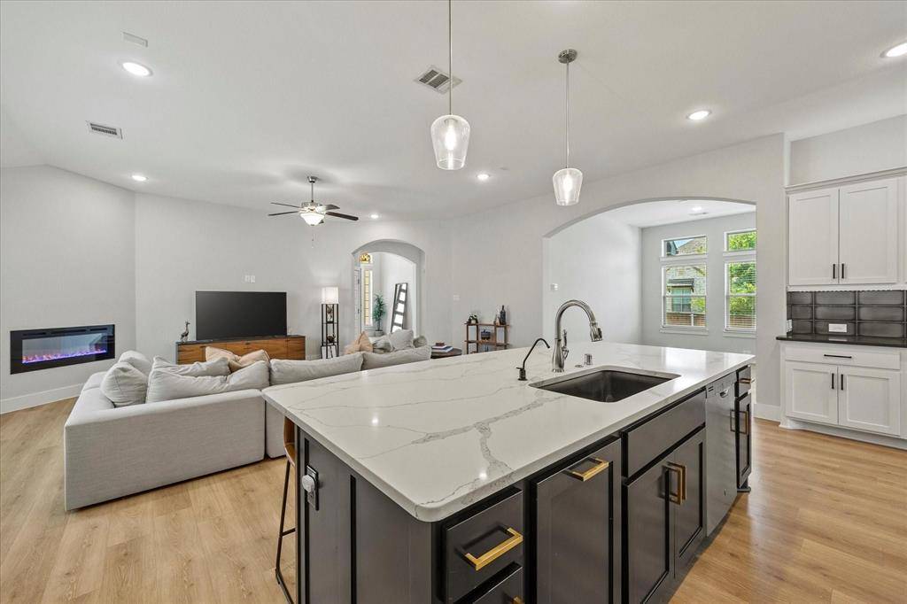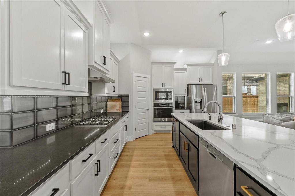 If you can find a nicer single story, corner lot, modern built, 3-car garage, 4 bed 3 bath, deluxe packaged, fully optioned out house minutes from Ray Hubbard and in Rockwall ISD for a better price than this, I'll eat my own shoe! Seriously! The specs on this house are eye watering and it really has to be seen in person to truly appreciate: an open concept floorplan with a beautiful gourmet kitchen, 3cm Carrera quartz countertops, level 5 tiling, wraparound 42 inch cabinetry, WIP, undercabinet lighting, premium upgraded door pull hardware, tall ceilings with recessed LEDs, electric fireplace, arched doorways, stainless appliance package, and so much more. Outdoor entertaining is no slouch either: sitting on a corner lot means this house has a ton of bonus yard space in addition to a covered patio that's pre-plumbed for grilling. Home also features a spacious 3 car garage with a front facing driveway, great for additional parking, storage, or even a home gym! Neighborhood HOA pool, trails, parks, and facilities are top tier and perfect for those hot summer pool days with the family. High resolution floorplan available upon request. Schools assigned: Celia Hays, JW Williams, Rockwall HS.