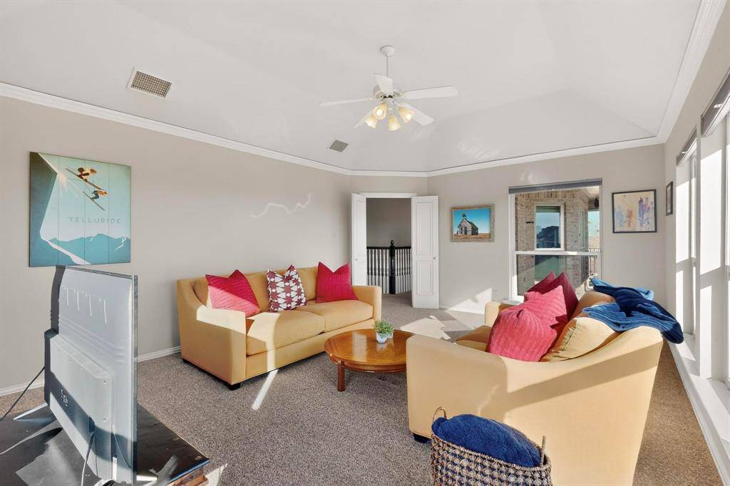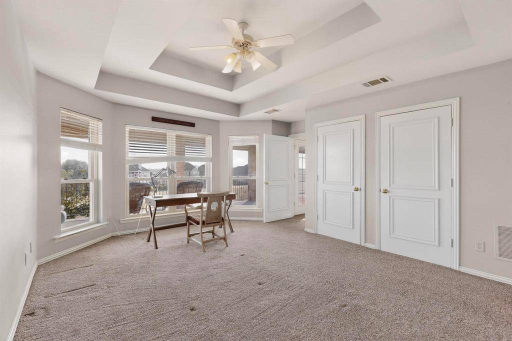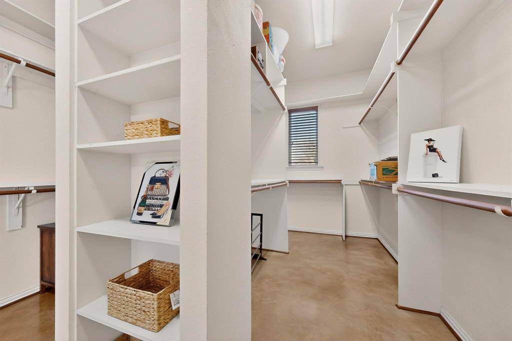 Retreat to the oversized primary suite featuring a private sitting area and a luxurious en-suite bath with a jetted tub and separate his-and-hers vanities. Large walk in closet includes built-in shelves and plenty of room for storage.
