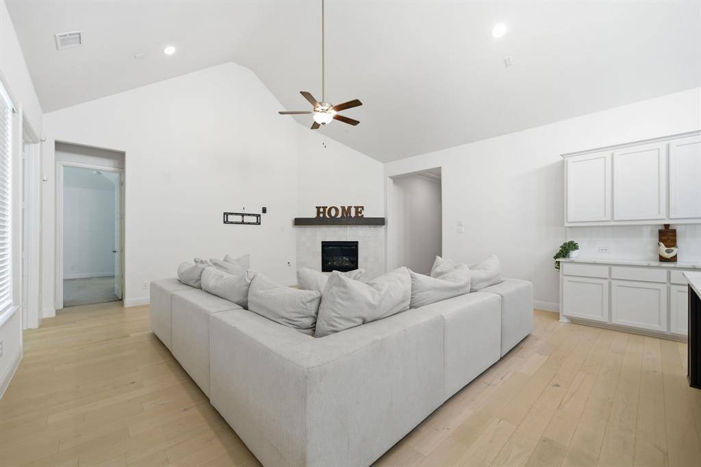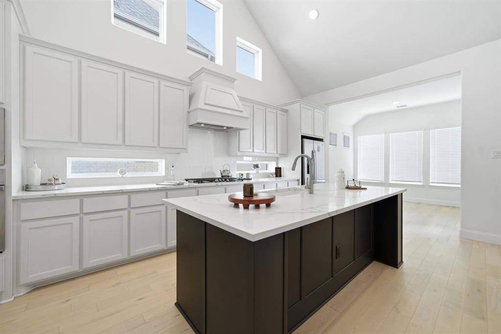 Welcome to Gideon Grove! Only lived in temporarily while finding a forever home this home is basically untouched. Gather with family and friends in the spacious family room featuring vaulted ceilings and an open-concept design that flows seamlessly into the kitchen. The gourmet kitchen is a true showpiece with a massive designer quartz island, abundant cabinetry, and a convenient butler's pantry for extra storage and prep space. Cook and entertain with ease using the GE 5-burner gas cooktop with iron grates, built-in stainless steel microwave, and oven.
