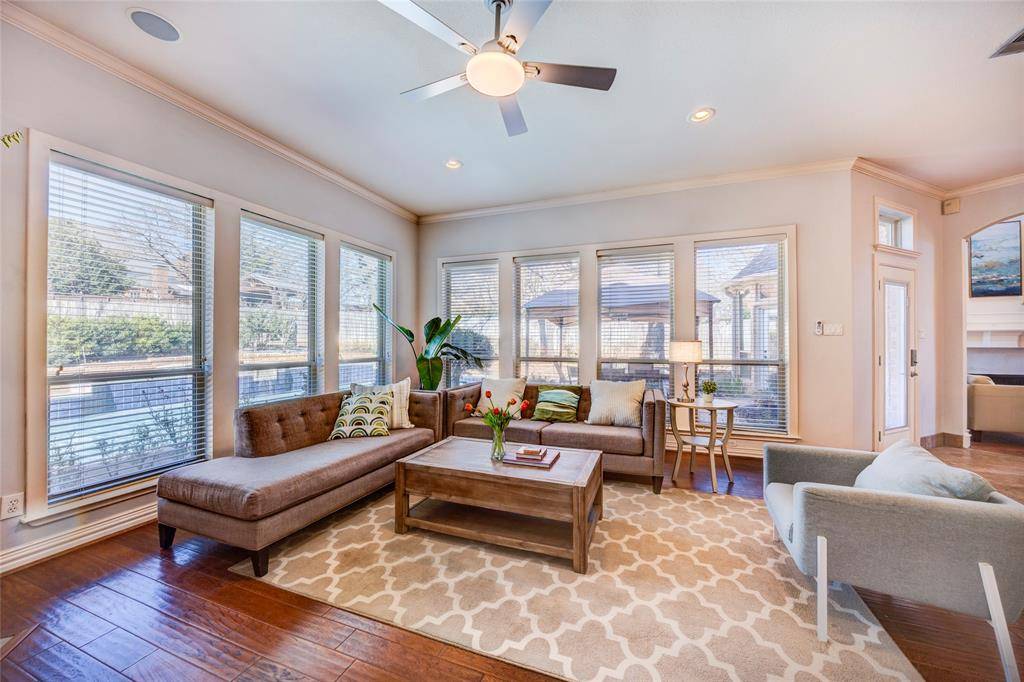 This beautifully maintained two-story residence exudes style, sophistication, and thoughtful design. Subtle interior level transitions provide natural separation of space and architectural charm while maintaining seamless flow, offering privacy and flexibility for everyday living or entertaining. Ideally suited for multigenerational living, hosting guests, or work-from-home arrangements. Light-filled interiors showcase soaring ceilings, rich hardwood floors, plantation shutters, and crown molding, with multiple elegant living areas, including an oversized raised study and a spacious media room. The well-appointed kitchen features repainted cabinetry, updated countertops, and newer appliances, complemented by fresh paint in key rooms and on select exterior elements. The home effortlessly blends open-concept living with intentional separation of spaces, creating warmth, style, and sophistication. Outside, enjoy a private retreat with a pool and spa, gazebo, and a striking front water fountain that makes a lasting first impression. Move-in ready, this property represents a rare opportunity in one of Southlake's most coveted communities, combining architectural charm, upscale finishes, and functional elegance.