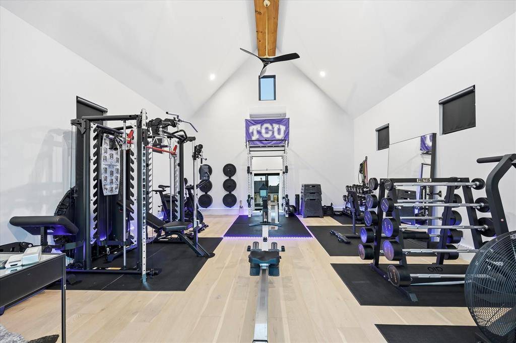 Everyone says ...If that home ever comes on the market, I'm gonna buy it!...Well, here it is! Spacious 1 Acre PRIVATE Corner home site accommodating a 4995 SF STUNNING Estate (4BD,4Bth,2 Powder Bth's,3 Living Areas & a Sep Office, huge Outdoor Living PLUS A 500SF separate bldg currently a work out facility). Not many boxes this one doesn't check. The large covered front porch welcomes you into the two story Foyer & Gathering area with breathtaking views of the resort inspired back yard paradise complete with Pool, Infinity edge spa, Sep Fire pit area & plenty of landscaped yard for kiddos & pets to run & play. The impressive Primary Retreat is down & privately located on one side of the home from all the other living space for seclusion. There is a 2nd Ensuite down, with a private entrance from the oversized (approx 1200Sf) FOUR CAR GAR & this Ensuite boast its own private living space perfect for MULTI-GENERATIONAL living. Upstairs there are two additonal ensuites with a large loft living area open to the foyer & gathering area below. The garage is equipped with two charging stations, built in cabinets is HEATED & COOLED (split unit) and offers tons of parking including the large circular drive in the front. Plus MUCH MUCH MORE! This (better than new) home was custom designed by the owners & built by George Welch Custom Homes in 2022, the area's premier luxury homebuilders. There is a WOW around every corner.
