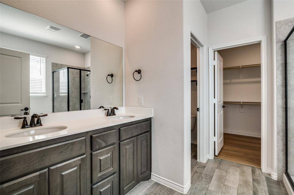 ROCKWALL ISD! Beautiful, well-maintained 4 bedroom, 3 bath home located in the award-winning Rockwall ISD. An inviting foyer welcomes you with custom woodwork and soaring ceilings, creating a warm first impression. The thoughtfully designed floor plan includes two bedrooms on the first floor, featuring a spacious primary suite and a private secondary bedroom that can also serve as a guest room or home office, complete with its own full bath. The living room and kitchen offer an open-concept layout ideal for everyday living and entertaining. The kitchen is equipped with a large island with barstool seating, gas cooktop, stainless steel appliances, a generous walk-in pantry, and a bright breakfast area. The primary suite provides a relaxing retreat with an en-suite bath featuring a garden tub, separate shower, dual sinks, and a large walk-in closet. Upstairs you'll find a spacious loft perfect for a game room or flexible living space, along with two additional bedrooms and a full bath. Step outside to enjoy the covered back patio overlooking a large backyard with a convenient storage shed. Throughout the home you'll find beautiful wood like flooring, decorative lighting, and a fantastic layout that offers both charm and great flow. The neighborhood features a community pool and many other amenities.