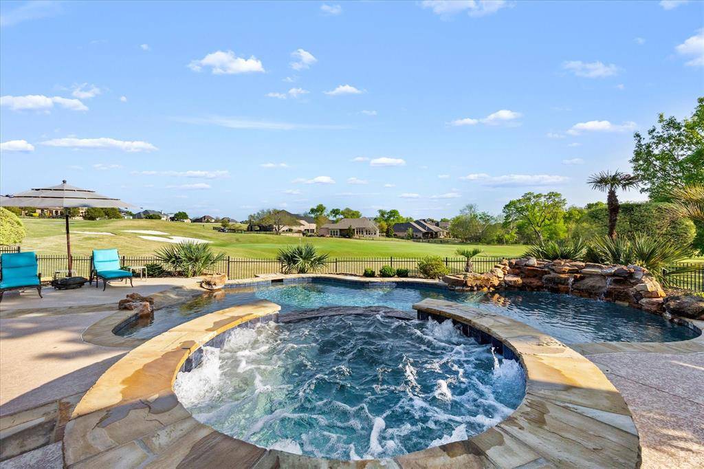 The fully updated kitchen is a chef's dream, showcasing modern finishes and seamless flow into the main living spaces. Rich hardwood floors run throughout the home, elevating the overall sophistication and style. Outdoors, enjoy your own private oasis with a sparkling swimming pool, custom water features, and a charming cabana, all overlooking the lush golf course-ideal for entertaining or unwinding in peace.