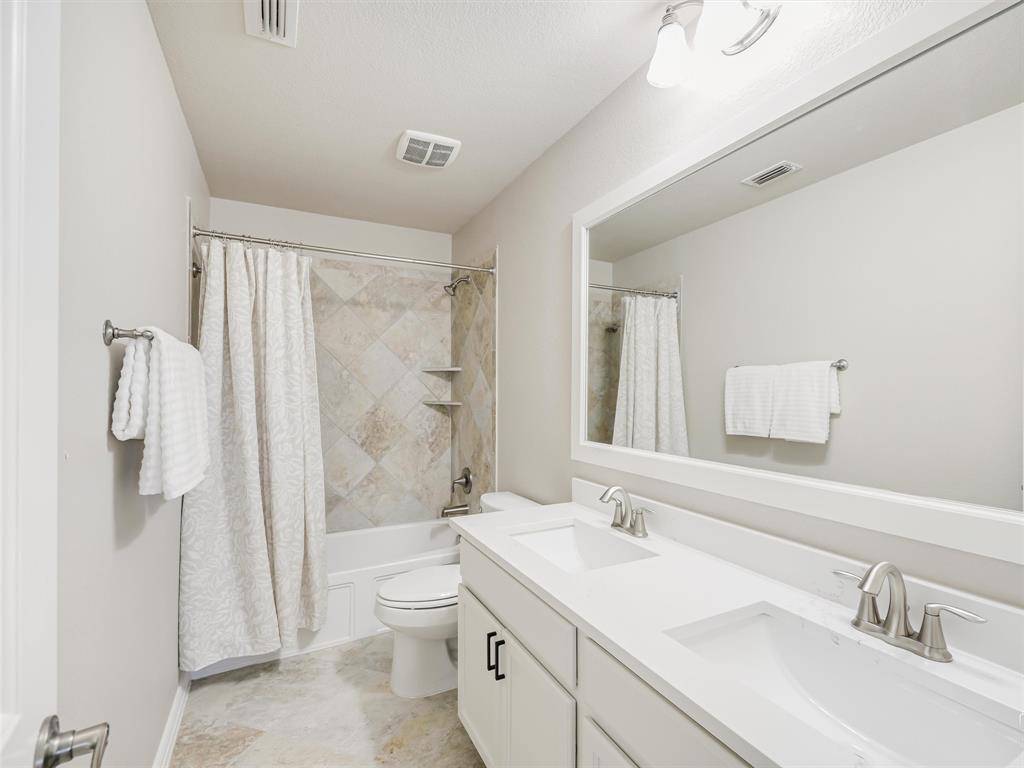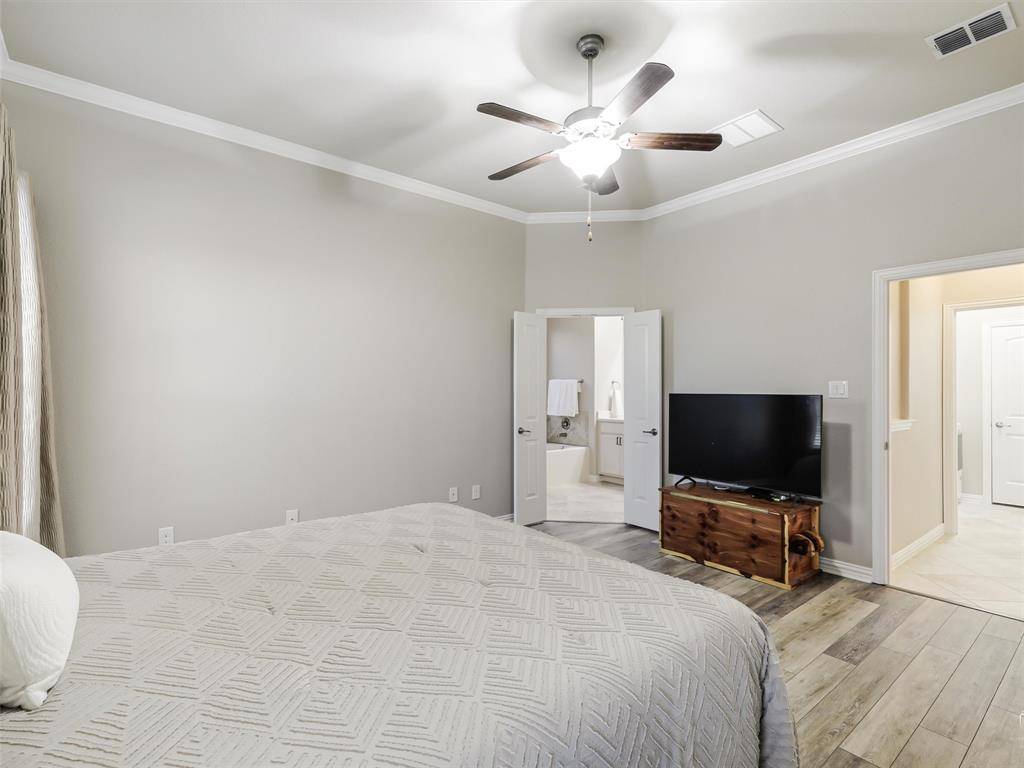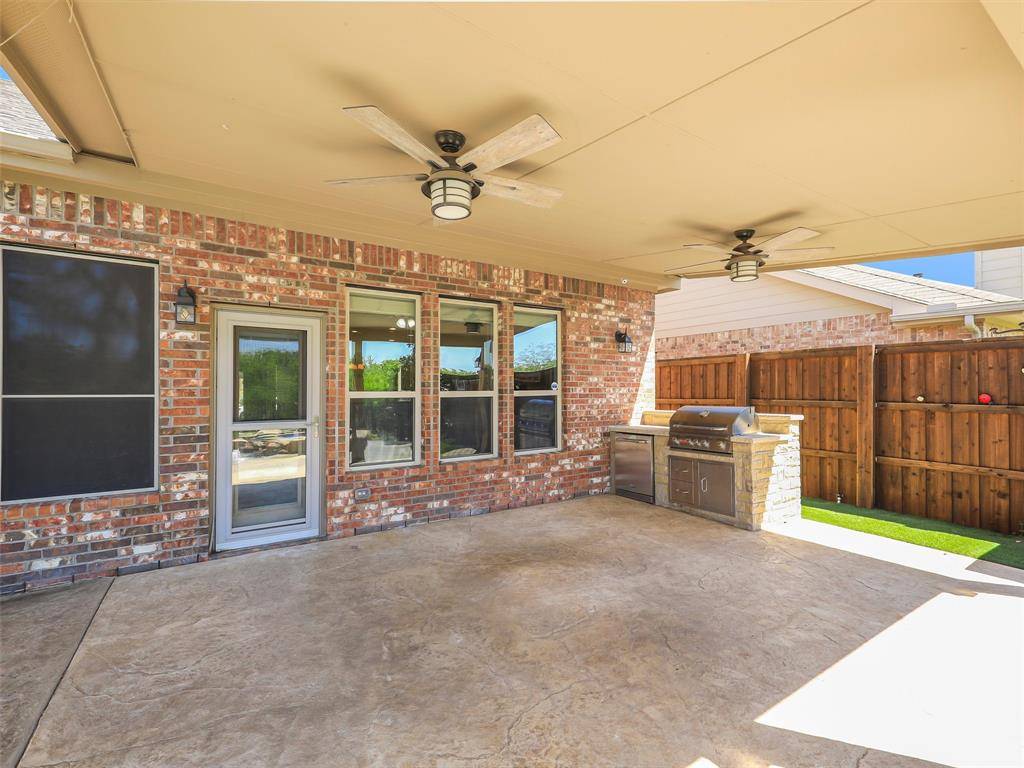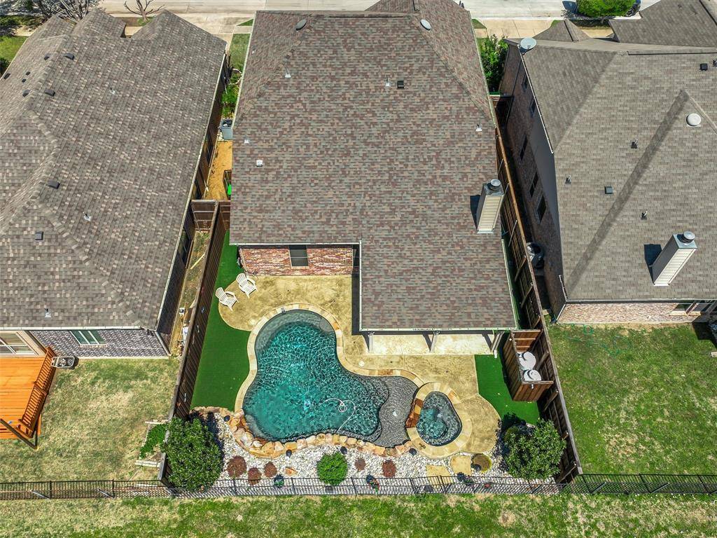 Beautiful Pool Home Backing to Greenspace and Creek- Welcome to 16416 Toledo Bend Court—where comfort, style, and outdoor living come together in one exceptional home. Ideally located and zoned to highly sought-after Prosper ISD, this home offers both convenience and top-tier schools. Situated on a private greenbelt lot, the property creates a true backyard oasis designed for relaxation and entertaining. Step outside to enjoy the stunning propane-heated pool and spa built by Riverbend Sandler, complete with water features, two waterfalls, tanning ledge, and an extensive seating ledge. The outdoor space continues with a covered patio featuring a built-in grill and refrigerator, low-maintenance turf, and a 7-foot board-on-board fence along the sides with an iron fence along the greenbelt—perfect for privacy and year-round enjoyment. Inside, the home showcases thoughtful updates and quality finishes throughout. Fresh interior paint, including cabinets, enhances the bright and inviting feel, while newly installed luxury vinyl plank flooring in the dining room, primary bedroom, and family room adds modern appeal. The living room overlooks the backyard and features a cozy wood-burning fireplace. The primary suite offers a relaxing retreat, with an en-suite bath featuring quartz countertops, a framed mirror, jetted tub, separate shower, and walk-in closet. Upstairs, enjoy a spacious game room ideal for entertaining or flexible living. In addition, you will find three nicely sized bedrooms and a second bathroom updated with quartz counters and painted cabinetry. Additional highlights include a walk-out attic for easy storage, a two-car garage with extra workshop space, extensive crown molding, a Lennox HVAC system installed in 2024, and a Class 4 impact-resistant roof shingles. This home combines thoughtful upgrades, functional living spaces, an excellent location, and an unbeatable outdoor setting—don't miss your opportunity to make it yours! Tons of Community Amenities