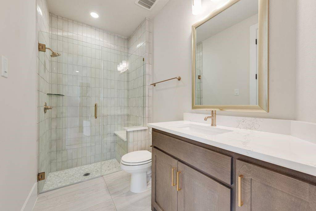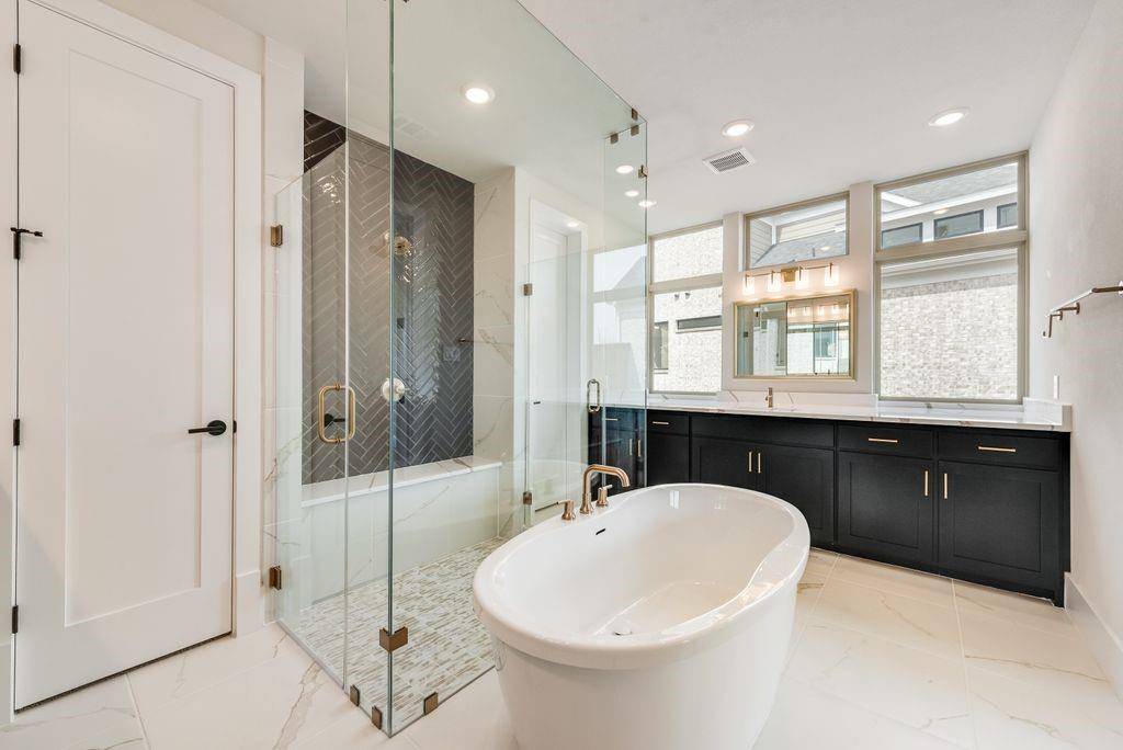 The primary suite is conveniently located on the main level, offering a private retreat with free standing tub, champagne plumbing fixtures & frameless glass shower. Additional highlights include a dedicated office, downstairs guest suite, multiple living areas, and an upstairs game room, media room plus a bonus room providing flexibility for work, play, and relaxation.