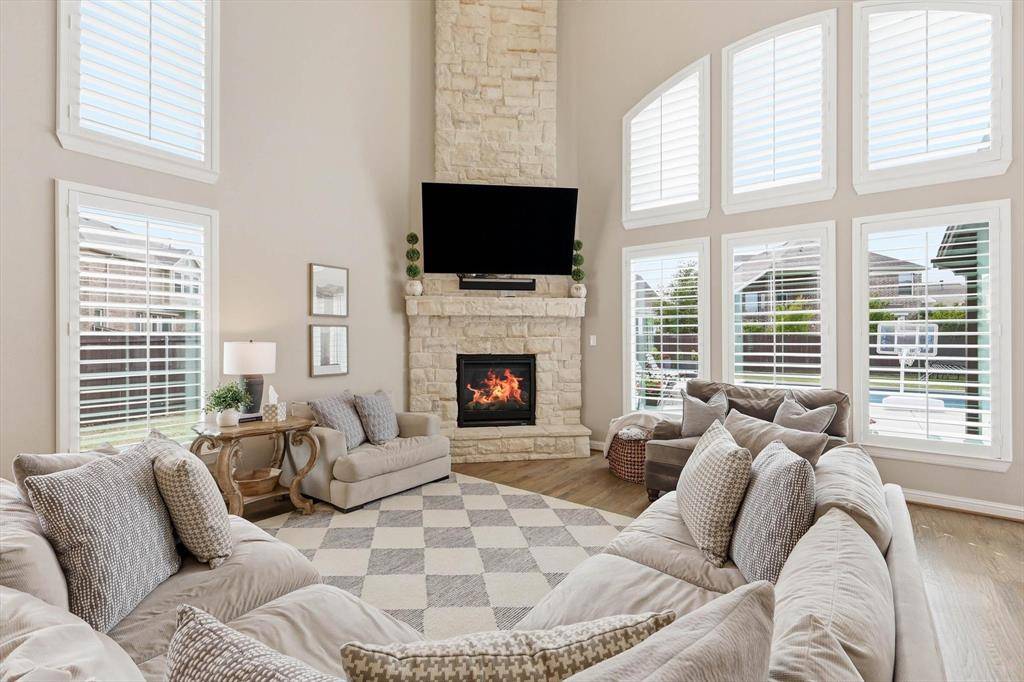 Additional highlights include decorative lighting and ceiling fans, plantation shutters, tankless water heater, dual HVAC systems, and a fully fenced backyard. Located near greenbelt trails, parks, this home delivers space, functionality, and an elevated indoor outdoor lifestyle.