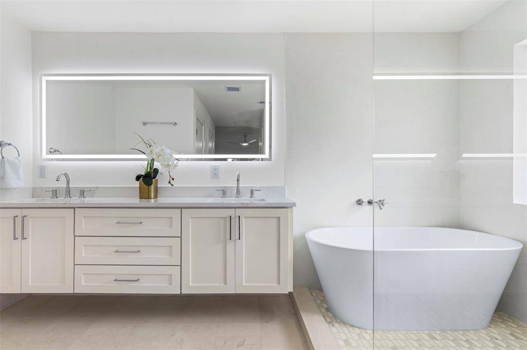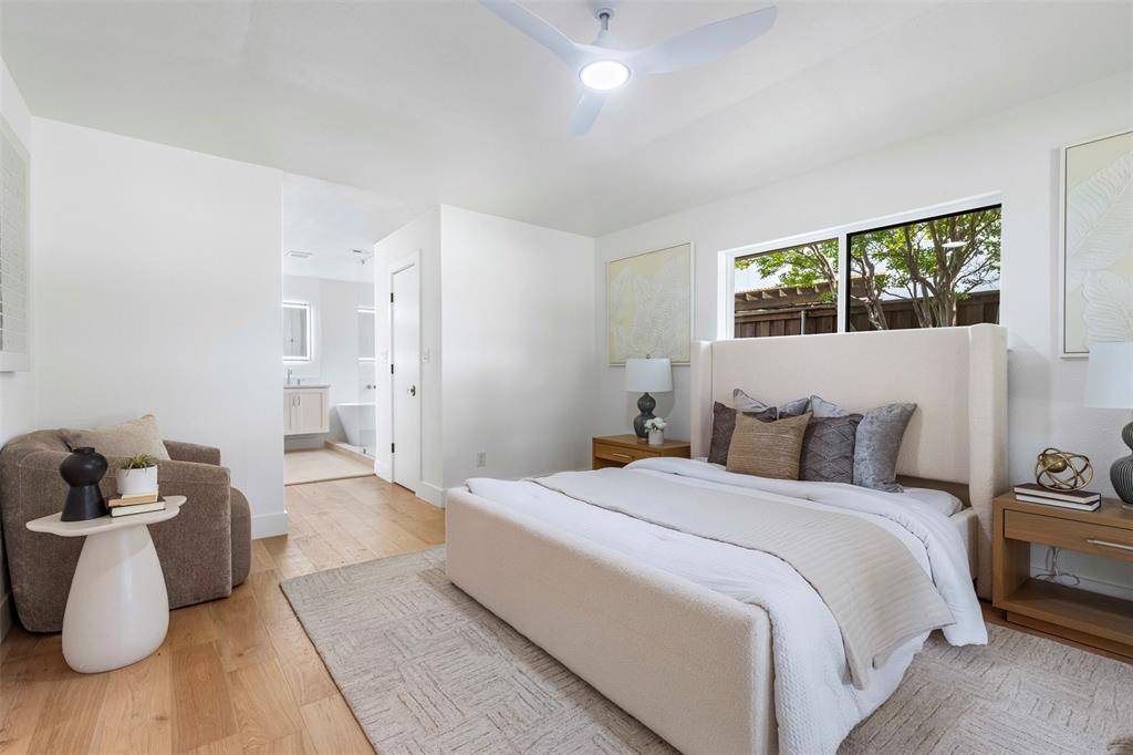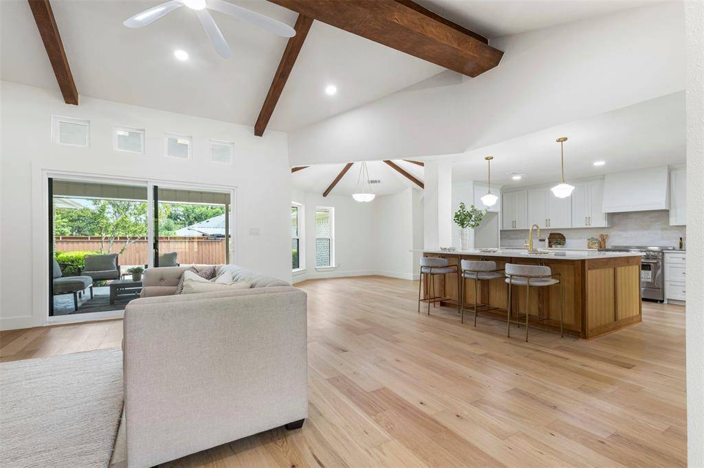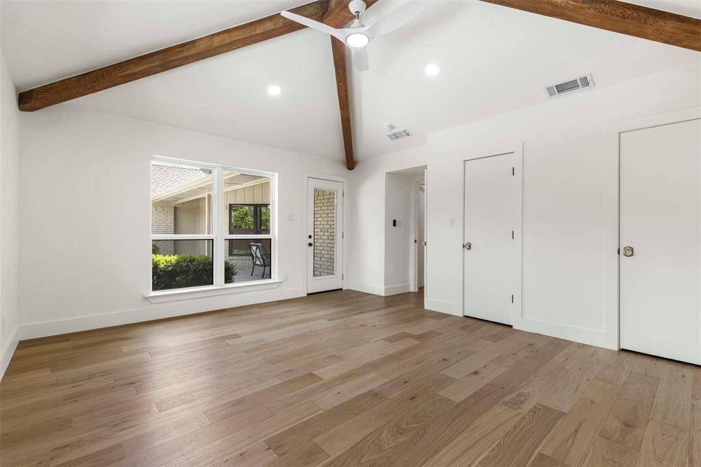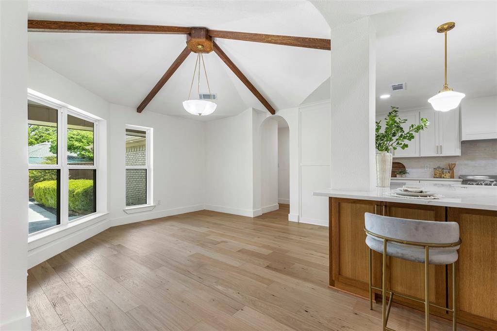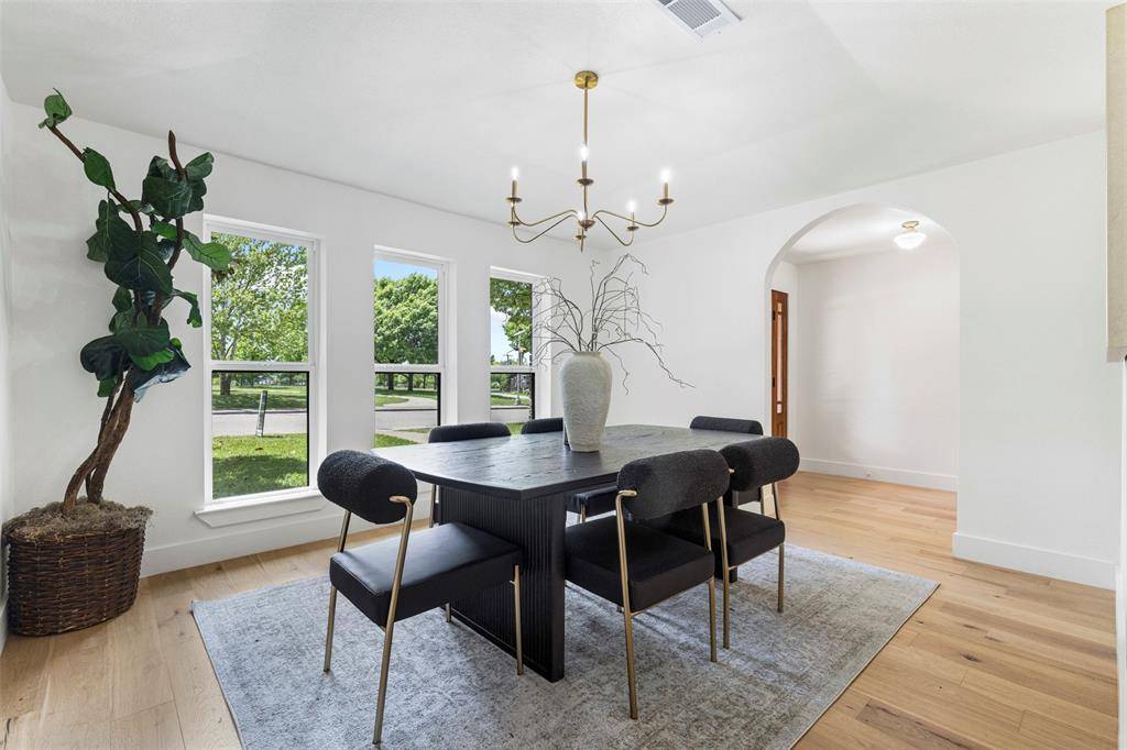 Fully renovated with fresh ownership in mind, this blends timeless character with thoughtful modern updates in a prime Dallas location across from Salado Park. Set on a one-third acre lot, the home offers a rare combination of old school charm with modern conveniences in the sought-after Richardson ISD, feeding Bowie Elementary and JJ Pearce HS. Step inside to a bright, open layout where engineered hardwood floors run throughout the living spaces, anchored by original wood beams that bring warmth and architectural charm. The living, dining, and kitchen areas flow together, creating an ideal setting for everyday entertaining. Large sliding glass doors frame views of the backyard, pulling natural light into the heart of the home. The kitchen is both stylish and functional, featuring white oak cabinetry, quartz countertops, a large island with seating overhang, stainless steel appliances, and a Bosch dishwasher. Arched doorways and schoolhouse lighting add character while keeping the design clean and current. Tucked away for privacy, the primary suite sits on the opposite side of the home from the additional bedrooms, offering a split floor plan. This private retreat includes three closets and a spa-inspired ensuite with a soaking tub, separate shower, custom vanities, and quartz counters, all wrapped in a plaster finish. A versatile fifth bedroom with its own private entrance to the backyard and pool creates endless possibilities as a guest suite, game room, home office, or flex space. Out back, the fully renovated pool shines with new plaster and all new equipment, surrounded by a covered deck that makes outdoor living easy year-round. Additional highlights include new windows, a repaired foundation with a transferable warranty, and thoughtful design details throughout, including a plaster fireplace and arched entryways. This is a rare opportunity to own a beautifully reimagined, move-in ready home with character, space, and a standout location in North Dallas.