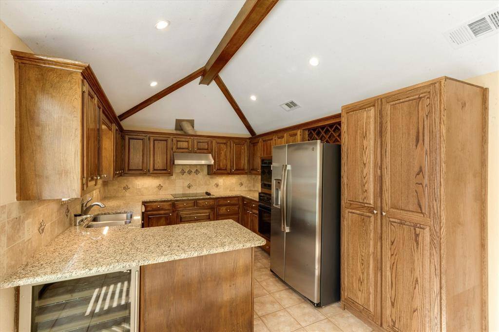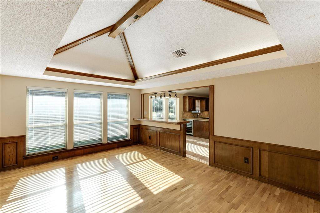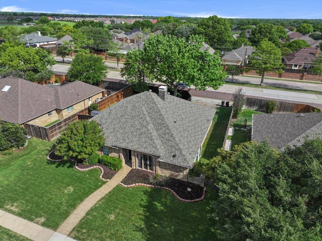 Beautiful one-story 4-bedroom home in a highly desirable Plano location, offering space, functionality, and key updates throughout. Ideally positioned with quick access to US Highway 75 and President George Bush Turnpike, and just minutes from Legacy West, The Shops at Legacy, and The Shops at Willow Bend. Located within the highly acclaimed Plano Independent School District. This spacious home features HVAC with high efficiency Solace Air Filtration installed in 2021 and the roof was installed in 2019. Vaulted ceilings, stunning wood paneling, and ceilings with exposed beams in the living room, second living and kitchen, creating a warm, inviting ambiance, complemented by built-in bookshelves and a cozy fireplace at the center of the home. The entry and family room offers crown molding and hardwood floors. Living flows seamlessly into the kitchen, ideal for entertaining, while the kitchen features granite countertops, wine and beverage chiller, new microwave, recess lights and ample storage, and built-in appliances. Four generously sized bedrooms include a large primary suite with dual sinks, a separate shower, a garden tub, and walk-in closets. Elegant tile in the entry and bathrooms, and hardwood flooring throughout the main living areas, carpet only in two closets. Major updates completed in 2024: remodeled master bathroom with a walk-in shower. Enjoy outdoor living under the covered patio, board on board fence perfect for relaxing or hosting guests.