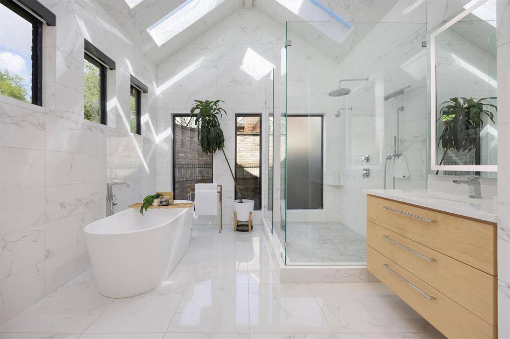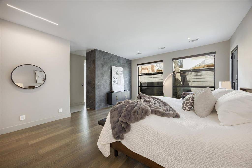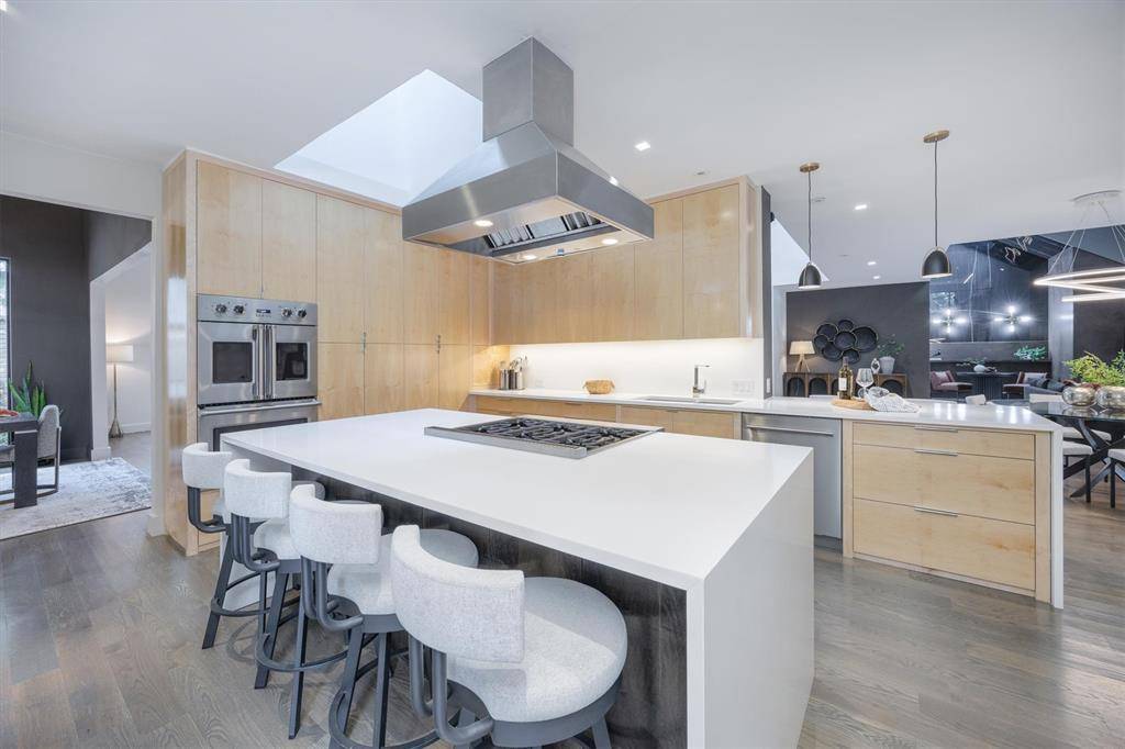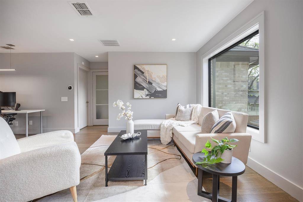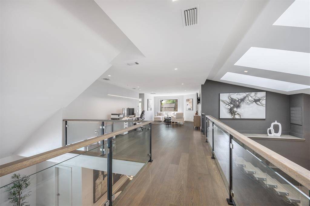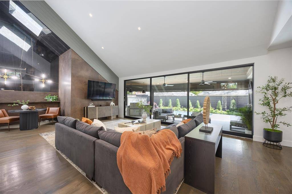 Fully reimagined and taken down to the studs, this home blends modern design with thoughtful functionality and exceptional craftsmanship. Walls and ceilings were opened, floors leveled, and steel beams installed to create a dramatic, open-concept layout, just begging to host parties and entertain guests. From the grand entrance, you'll notice the striking open staircase, Italian tile accent walls, and the beautiful seamless flooring throughout, all complemented by Level 4 wall finishes, integrated art lighting, and a discreet, high-efficiency cooling system.