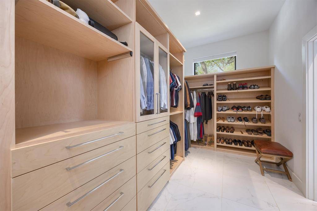 The private primary suite is a true retreat, offering direct access to the pool and a spa-inspired bath with an oversized walk-in shower, soaking tub, and a custom-designed closet built for both beauty and organization.