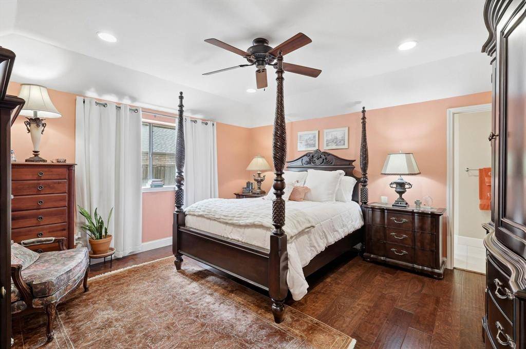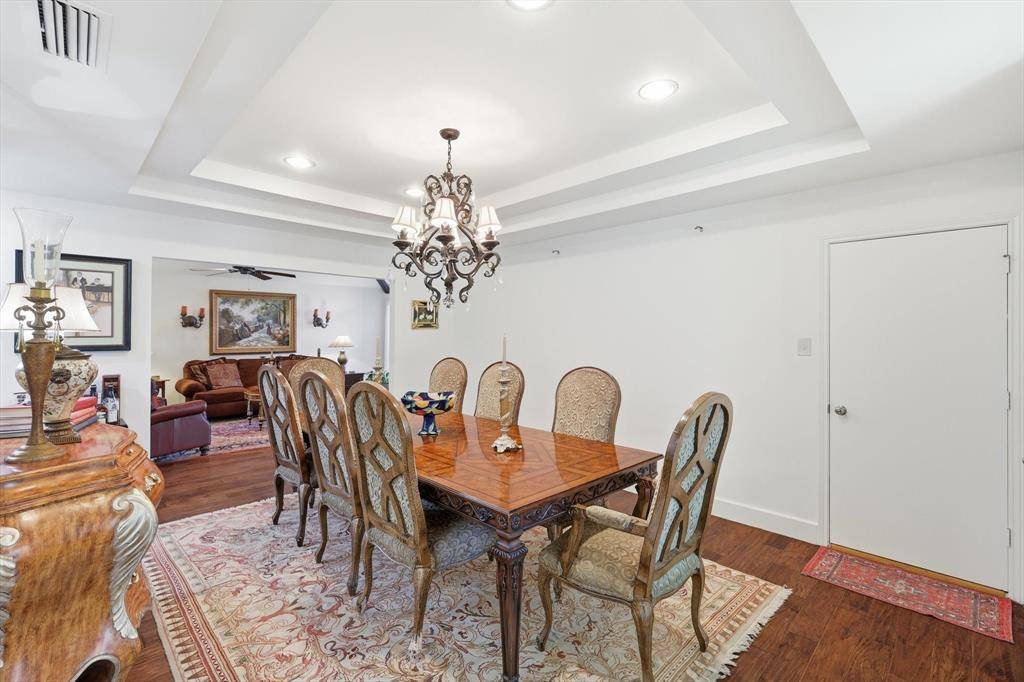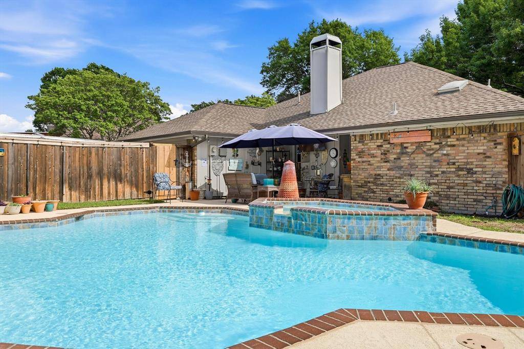 Beautiful one-story home with Pool and Spa in the desirable Pitman Creek North subdivision of Plano, awaiting its new owners! Top rated Plano ISD. This warm and inviting home blends comfort, warmth, and everyday functionality. Featuring 3 bedrooms, 2 full baths, 2 living areas, 2 dining areas and a 2-car garage. Wood floors throughout the house except tile flooring in the kitchen and 2 bathrooms. No carpet in this house. Fresh Paint throughout living, dining and kitchen areas. Large windows fill the space with natural light, while the brick fireplace adds a cozy touch to the main living area. Large Master bedroom suite offers vaulted ceiling, bright skylight, frameless glass shower with mosaic tile accent wall, his and her closets. Recent updates include new Microwave (2026) and dishwasher (2025), refinished swimming Pool and Spa (2025). Steps to Hackberry Park. Close to Highway 75 and President George Bush Turnpike, and just minutes from Legacy West, The Shops at Legacy, and The Shops at Willow Bend. Must see - Don't miss it!
