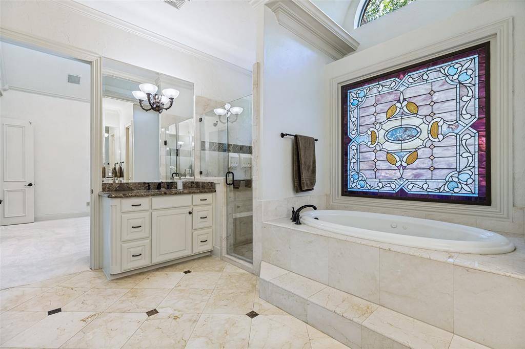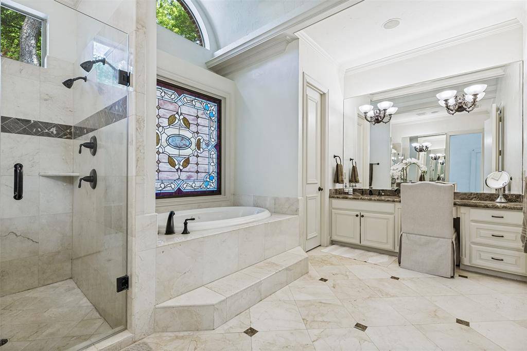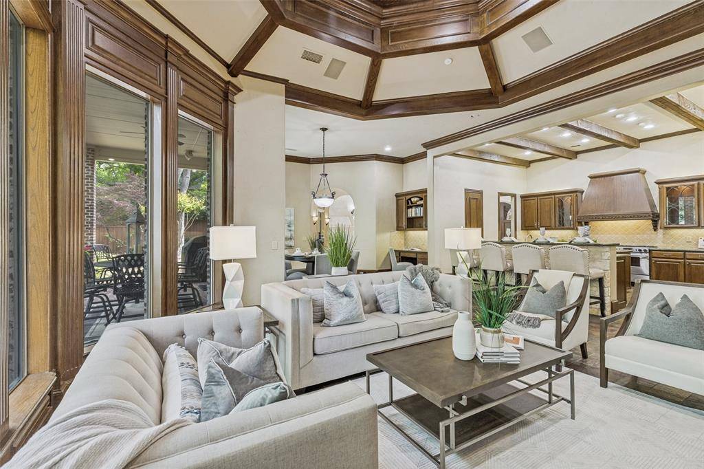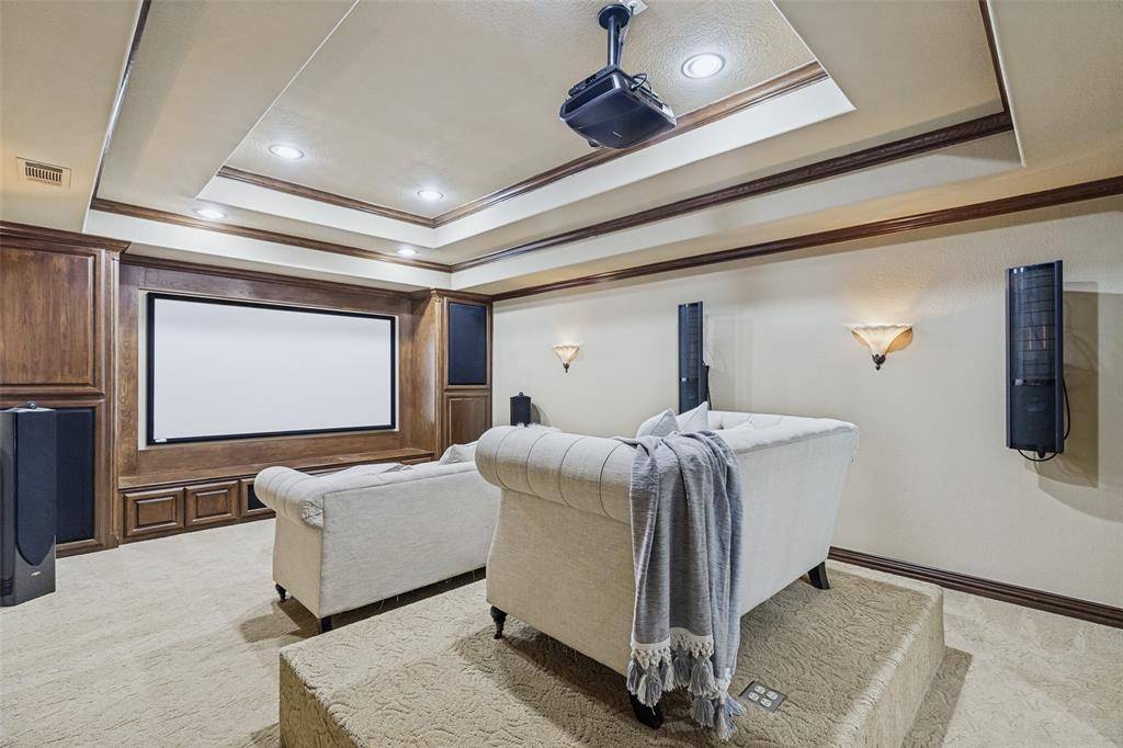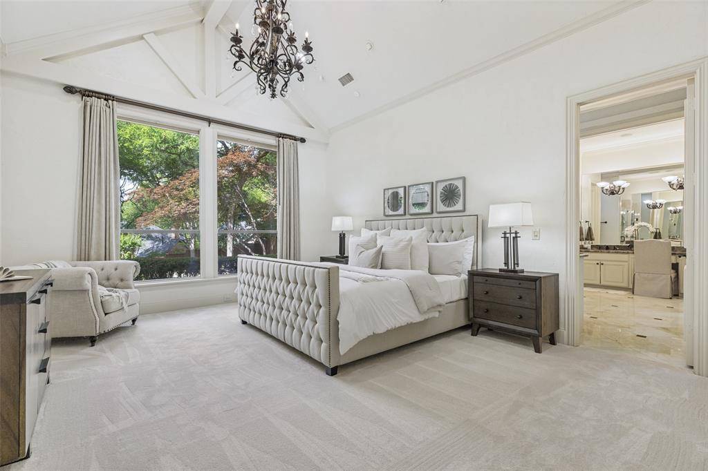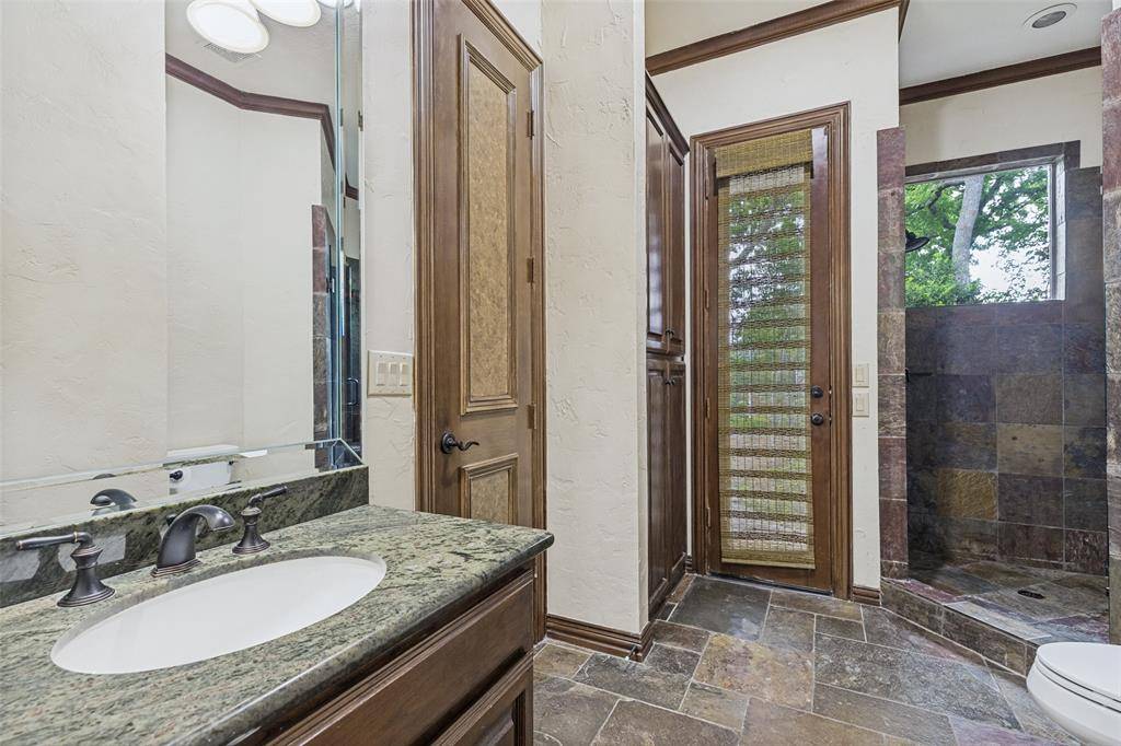 Tucked away on a quiet cul-de-sac in highly sought-after Shoal Creek, this exceptional home sits on a rare pie-shaped lot surrounded by mature trees and lush landscaping, offering both privacy and a true backyard retreat. The serene outdoor oasis features a sparkling pool and spa, along with a covered patio perfect for year-round entertaining. Inside, you're welcomed by soaring ceilings, elegant formal living and dining spaces, and a light-filled layout designed for both everyday living and hosting. The chef's kitchen boasts a large island, gas cooktop, built-in Sub-Zero refrigerator, and a butler's pantry. It opens seamlessly to the spacious family room with tranquil views of the backyard. Thoughtfully designed, the home offers generously sized bedrooms, each with its own en-suite bath. A stunning two-story office with custom built-ins provides the perfect work-from-home setting. The primary suite is a private retreat featuring vaulted ceilings and a spa-like bath with separate vanities. Dual staircases lead to the second floor, where you'll find a media room, expansive game room with a walk-in wet bar, balcony access, and three additional oversized bedrooms. This home offers a 3 car garage with motor court, plenty of storage, is near walking trails, has quick access to DNT, and is close to dining and shopping. It is a rare find.