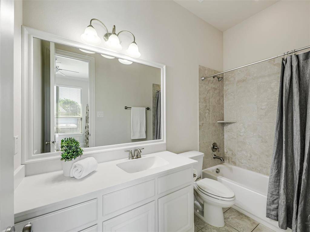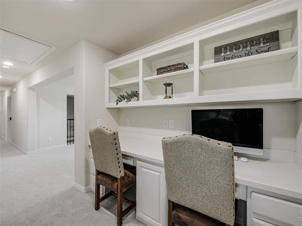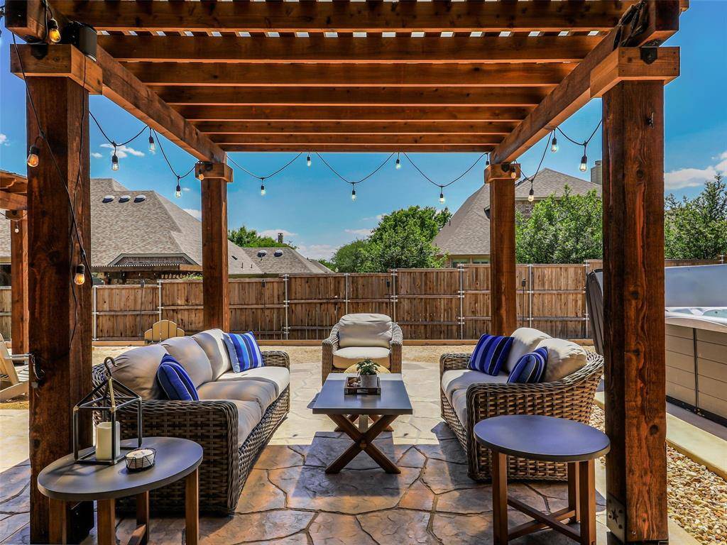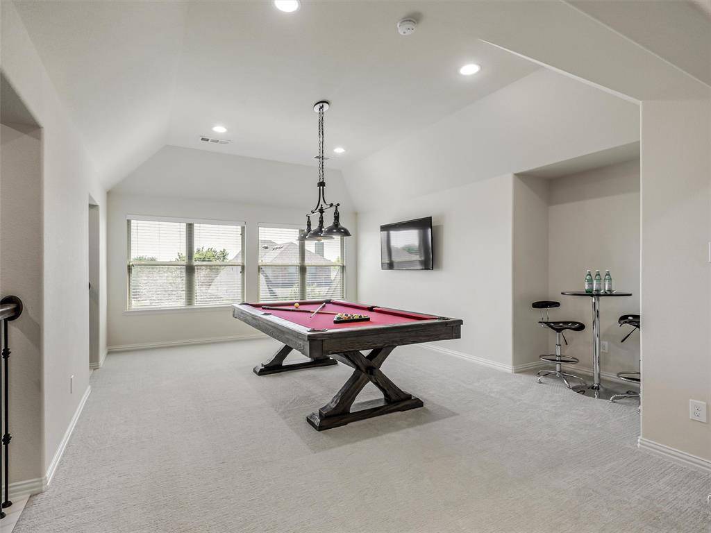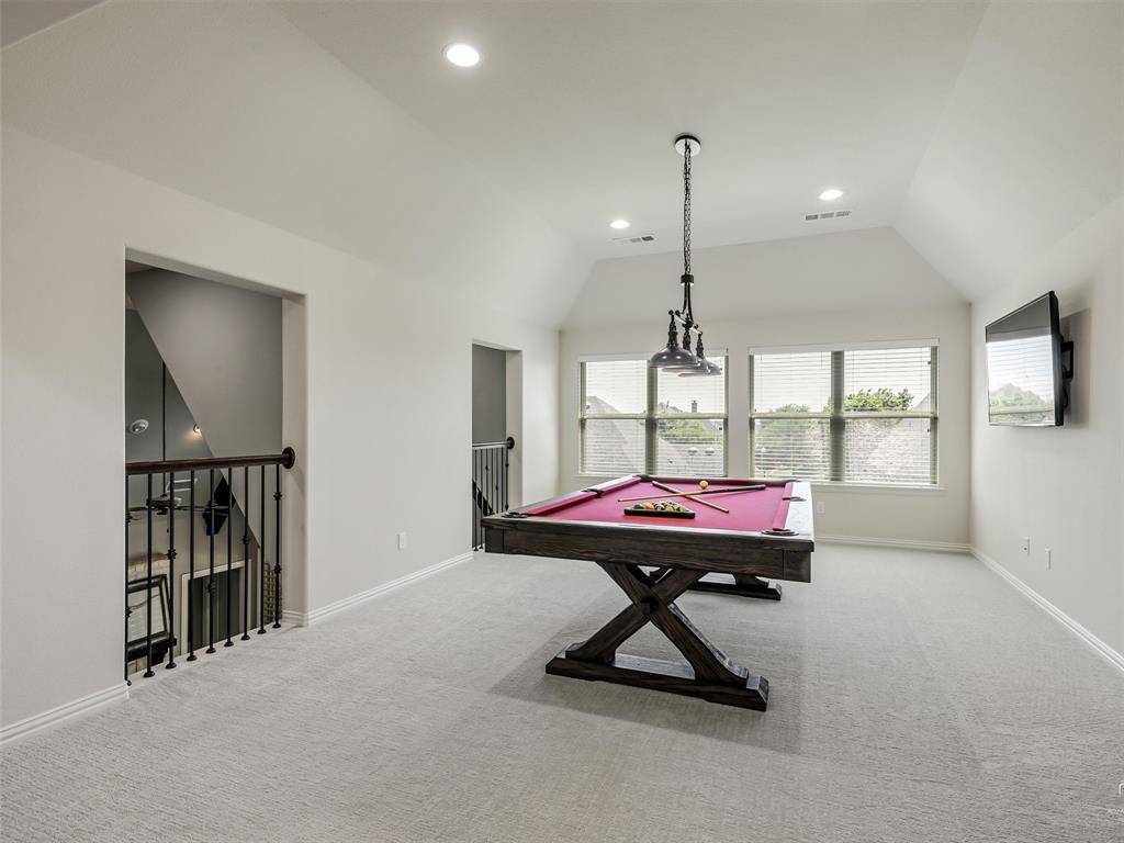 Discover the luxury and lifestyle in the highly sought-after Willow Ridge of Prosper. This stunning 5-bedroom, 4.5-bathroom masterpiece offers a financial advantage with no PID or MUD taxes, providing incredible value alongside its premium upgrades. The home radiates positive energy with a brand-new roof, fresh designer paint, and plush new carpet throughout. From the moment you enter, the craftsmanship is evident, featuring soaring vaulted ceilings with rich wood accents, plantation shutters, 8-foot solid core doors, and solid wood floors. The open-concept heart of the home is a chef's dream, centered around a pristine white island kitchen with a large walk-in pantry, a dedicated butler's pantry, and an Austin stone fireplace that anchors the family room. Designed for modern living, the floor plan offers ultimate flexibility with both the primary suite and a secondary bedroom located on the main floor. For the cinema enthusiast, a private downstairs movie theater provides the perfect escape, while the upstairs serves as a dedicated retreat for family and fun. A spacious loft and game room overlook the family room below, complemented by a cozy, secluded window seat for quiet reading and a built-in double desk tailored for studying or gaming. Every practical need is met with a large laundry room featuring a built-in sink and a three-car garage finished with epoxy floors.The entertainment flows seamlessly outdoors to an oversized lot featuring an extended, stamped-concrete covered patio. This backyard oasis is a true destination, complete with a relaxing hot tub and custom-built courts for bocce ball and cornhole. Situated just minutes from the Dallas North Tollway and the premier shopping and dining at the Gates of Prosper, this home offers the perfect blend of seclusion and accessibility. Located in highly-ranked Prosper ISD, this property is a rare opportunity to secure a lifestyle of elegance and ease in one of North Texas's most desirable communities.