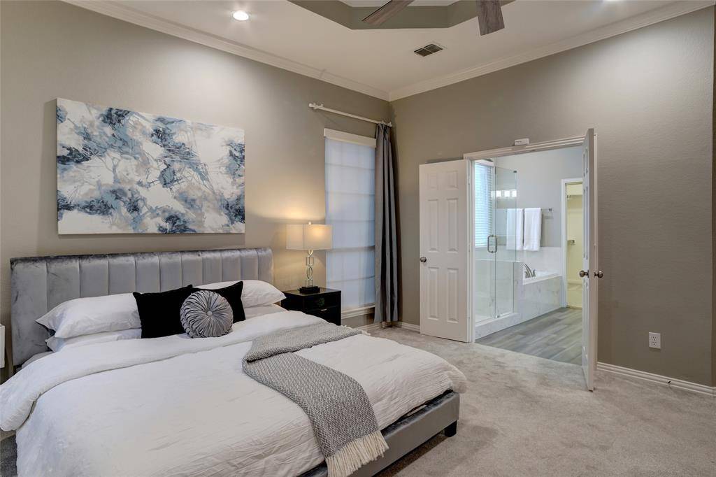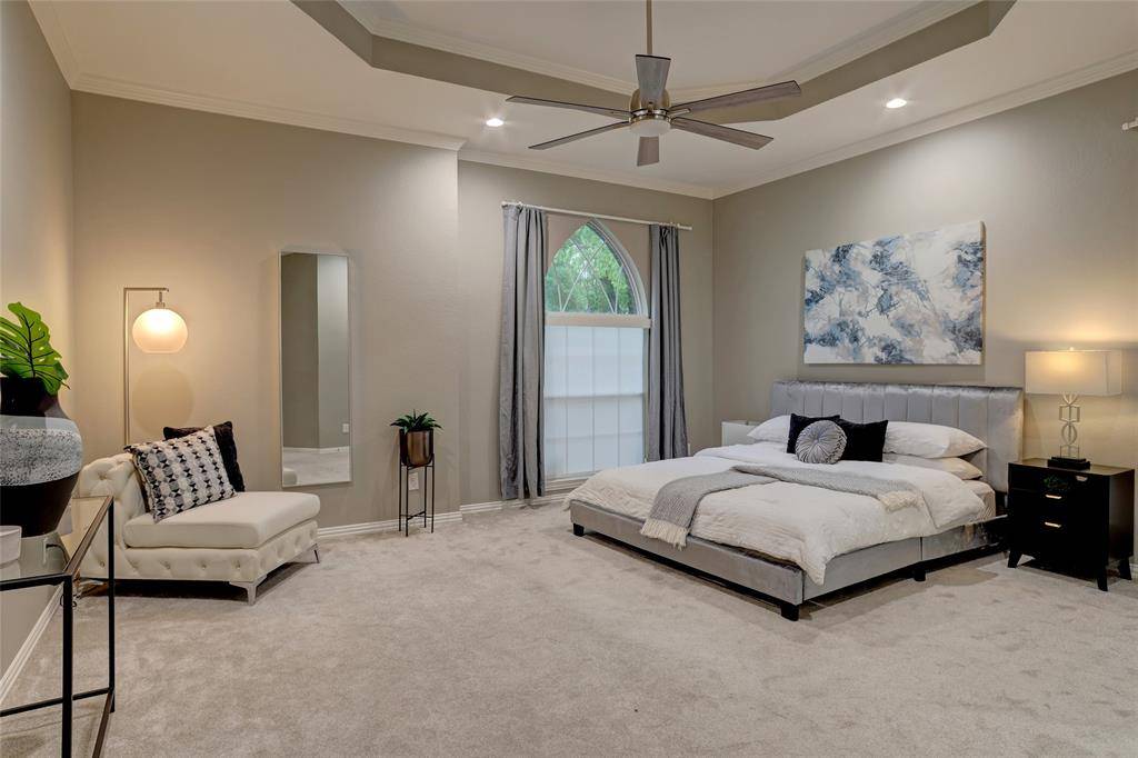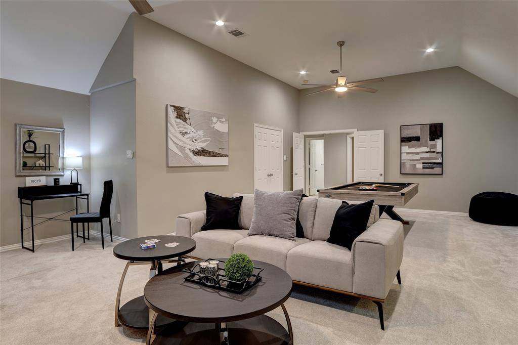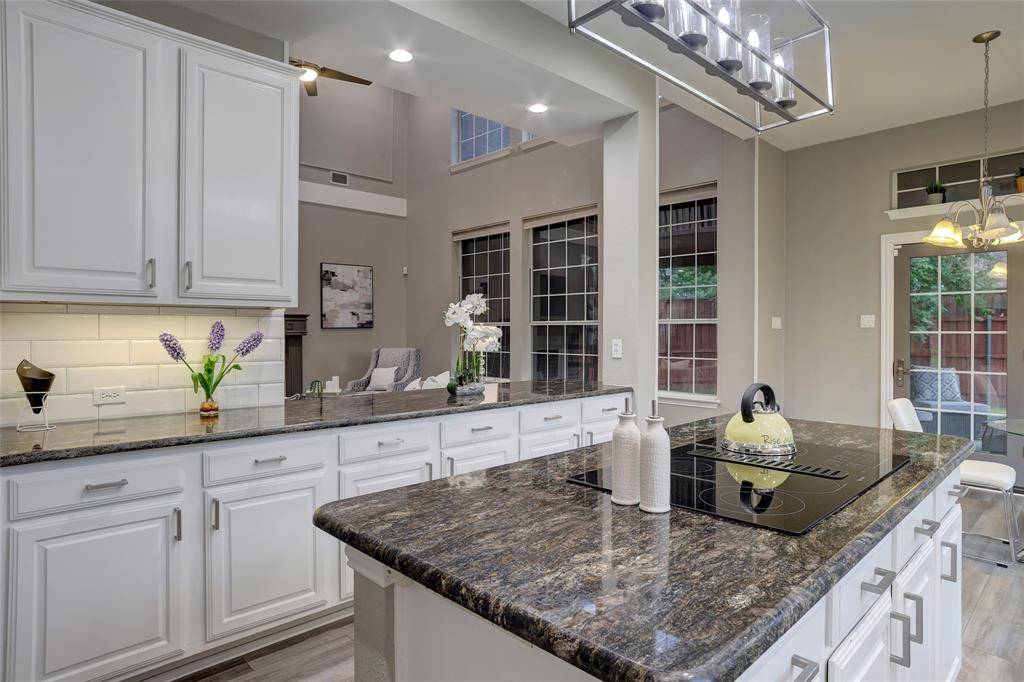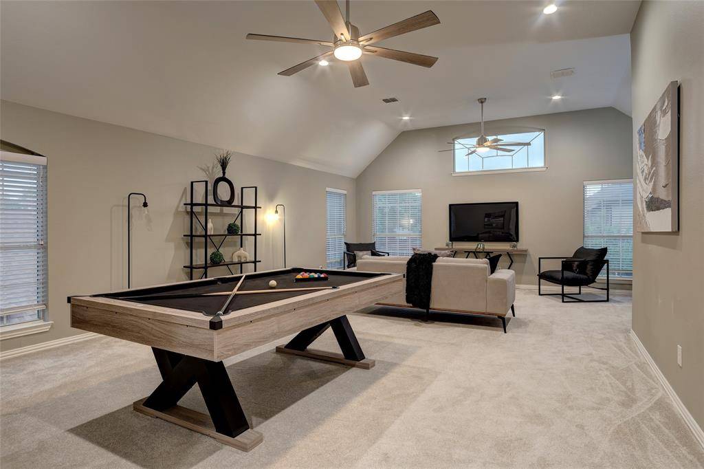 Beautifully updated home in sought-after Plantation Resort, ideally located in the heart of Frisco near top shopping, dining, and entertainment. Features a bright open floor plan with soaring ceilings, spacious living area with fireplace, private study, and formal dining. Kitchen offers ample storage and island, opening to breakfast area. Primary suite with dual sinks, jetted tub, separate shower, and walk-in closet. Upstairs includes oversized game room and secondary bedrooms. Enjoy a covered patio and spacious backyard, within walking distance to elementary school, parks, and playground.